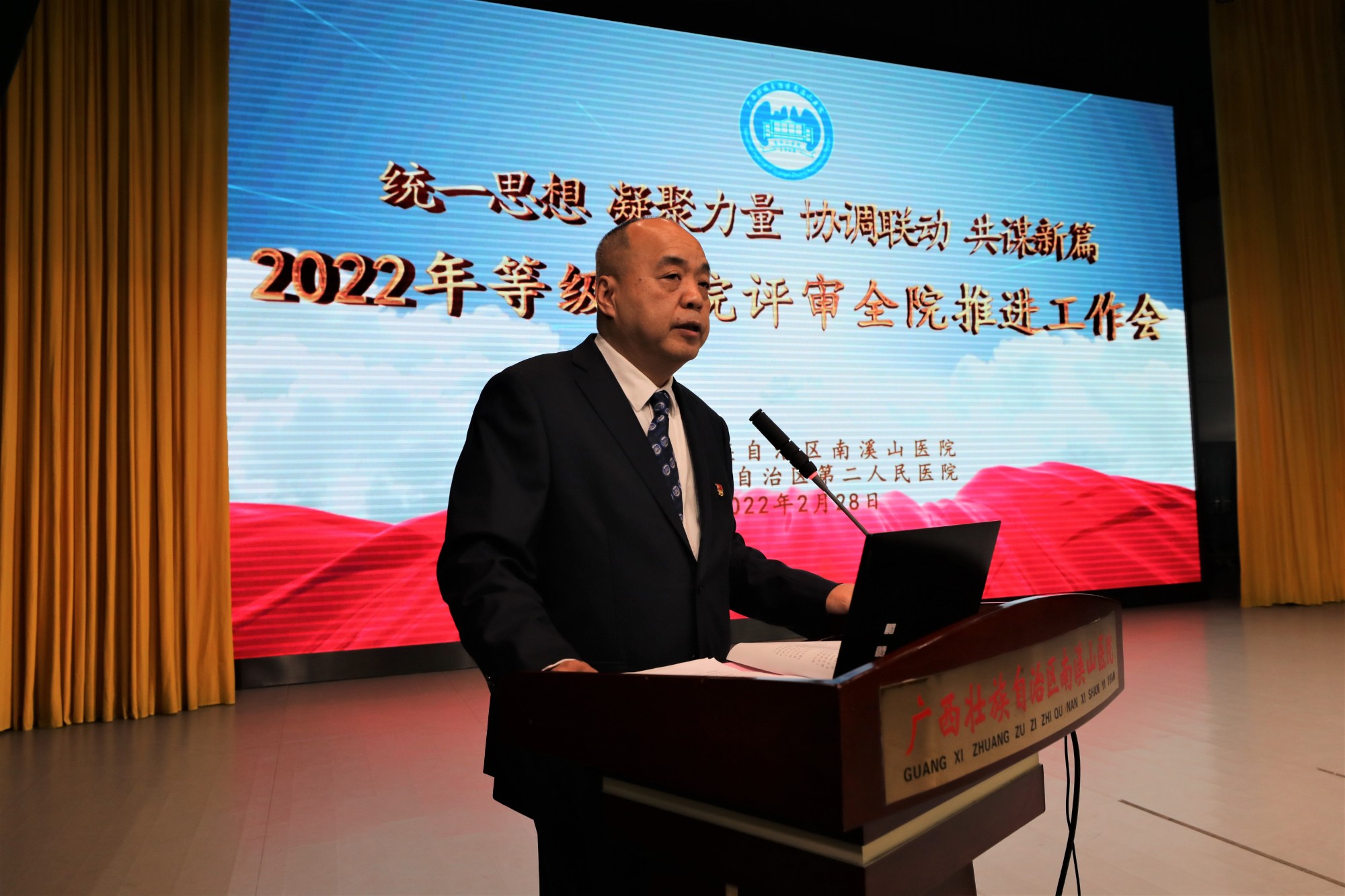 为扎实有效推进医院等级评审工作,2月28日下午,广西壮族自治区南溪山医院在该院大礼堂召开了2022年等级医院评审推进工作会,该院党政班子成员、中层干部以及各科内审员、数据员参加会议。