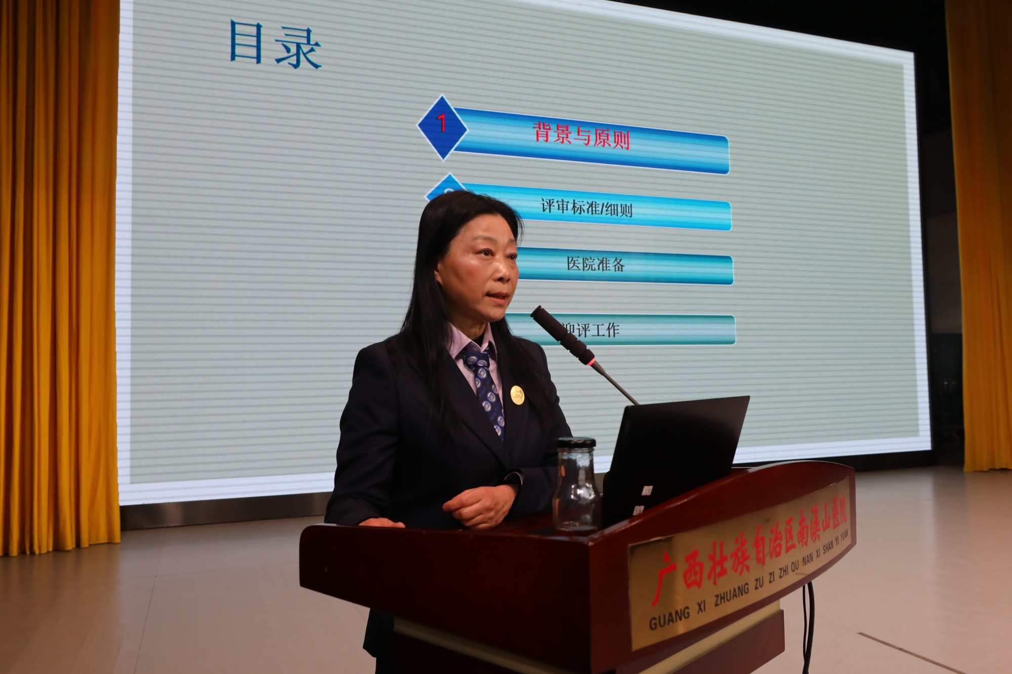会上,该院等级办专家赵俏峰为全体参会人员详细解读了三级综合医院评审的标准并进行了专题培训。