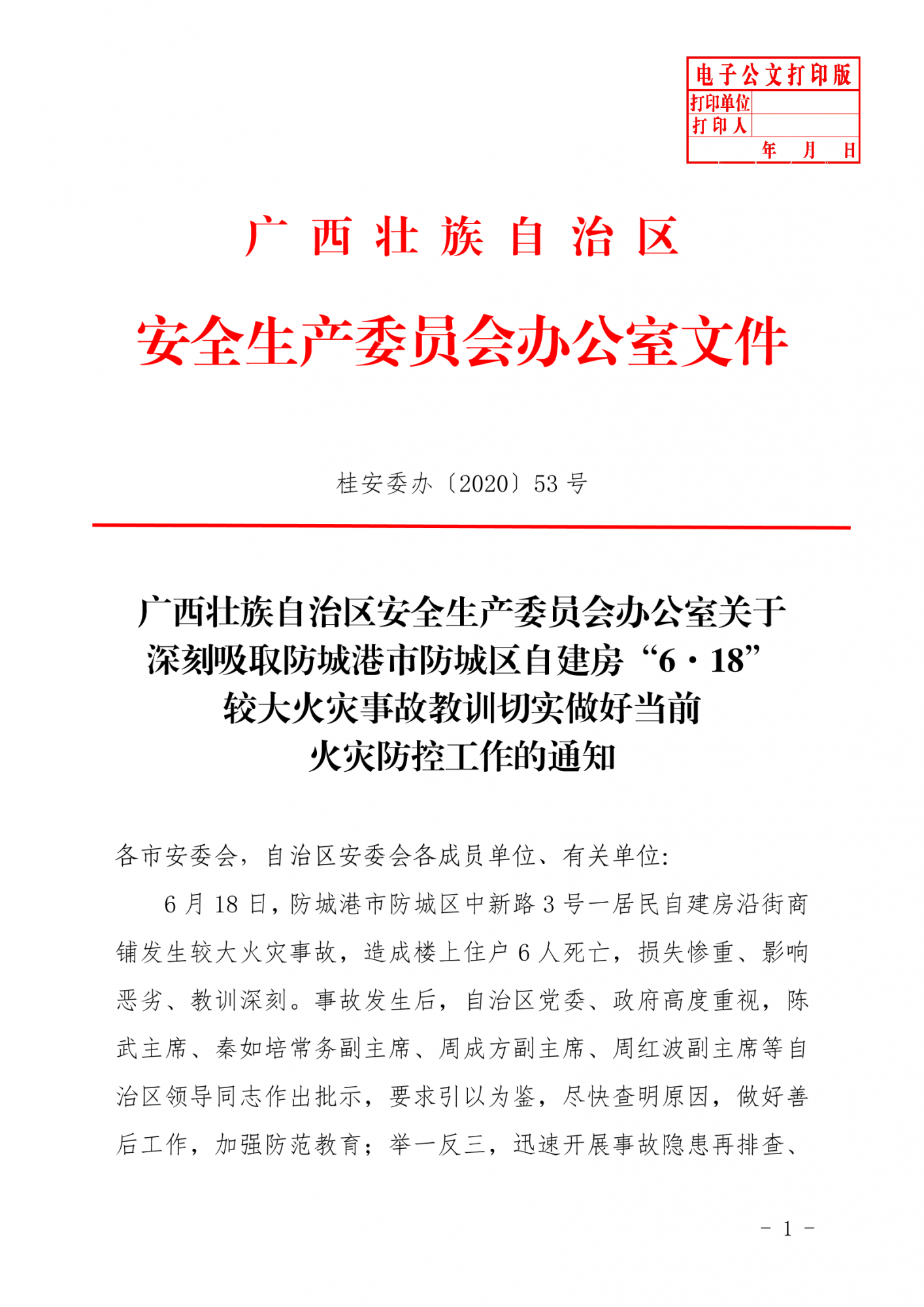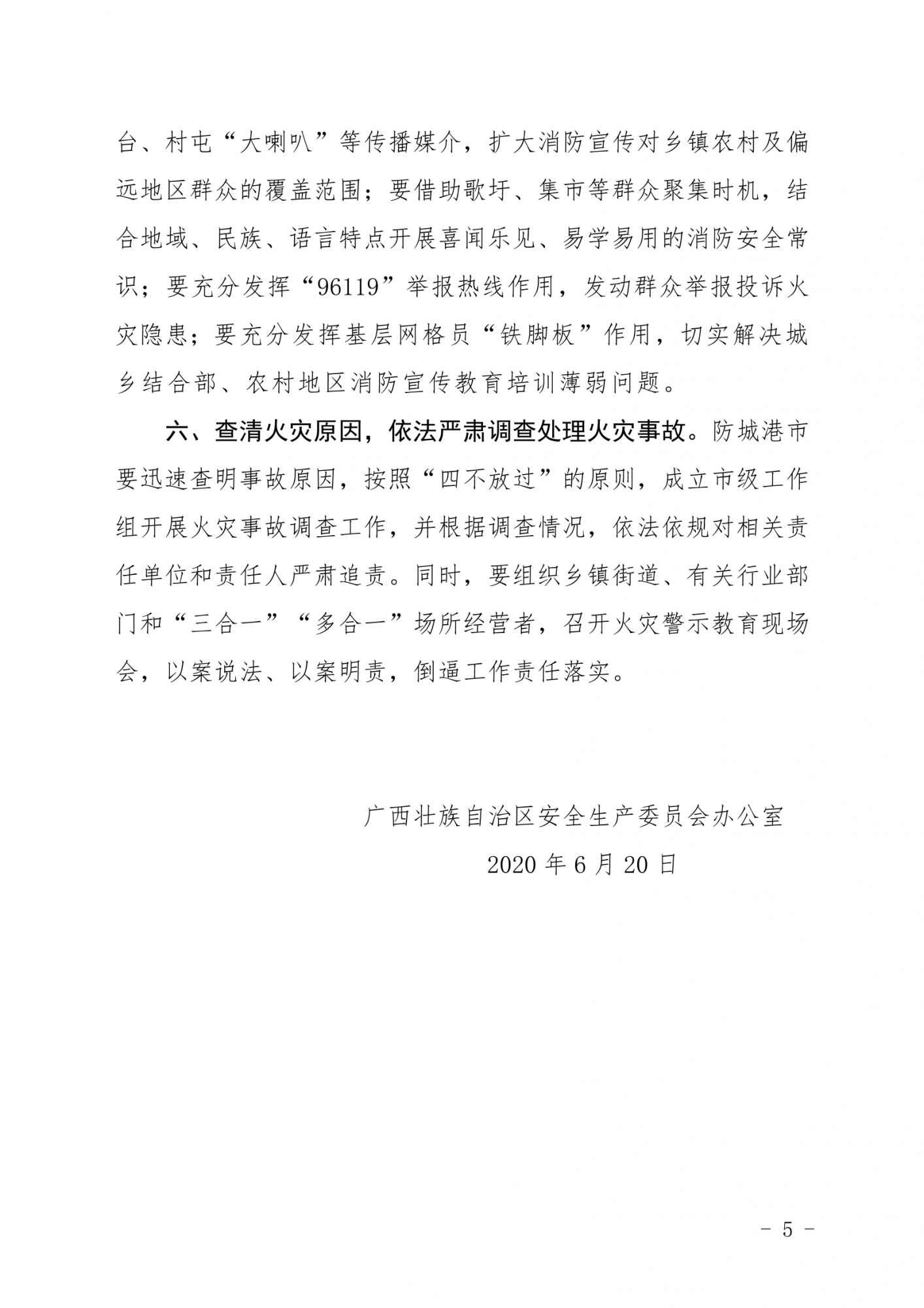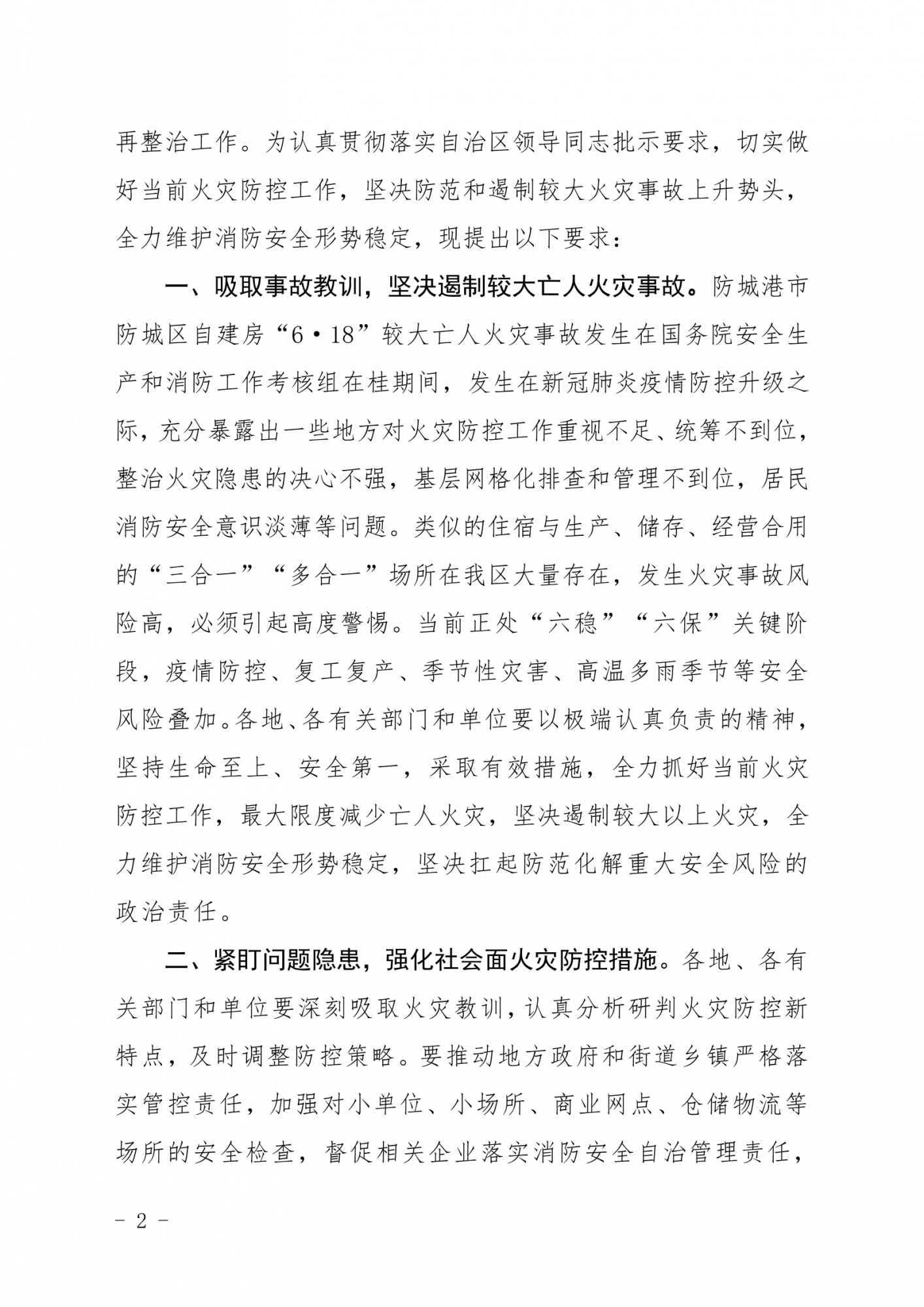 广西壮族自治区安全生产委员会办公室关于深刻吸取防城港市防城区自建房“6.18”较大火灾事故 教训切实做好当前火灾防控工作的..