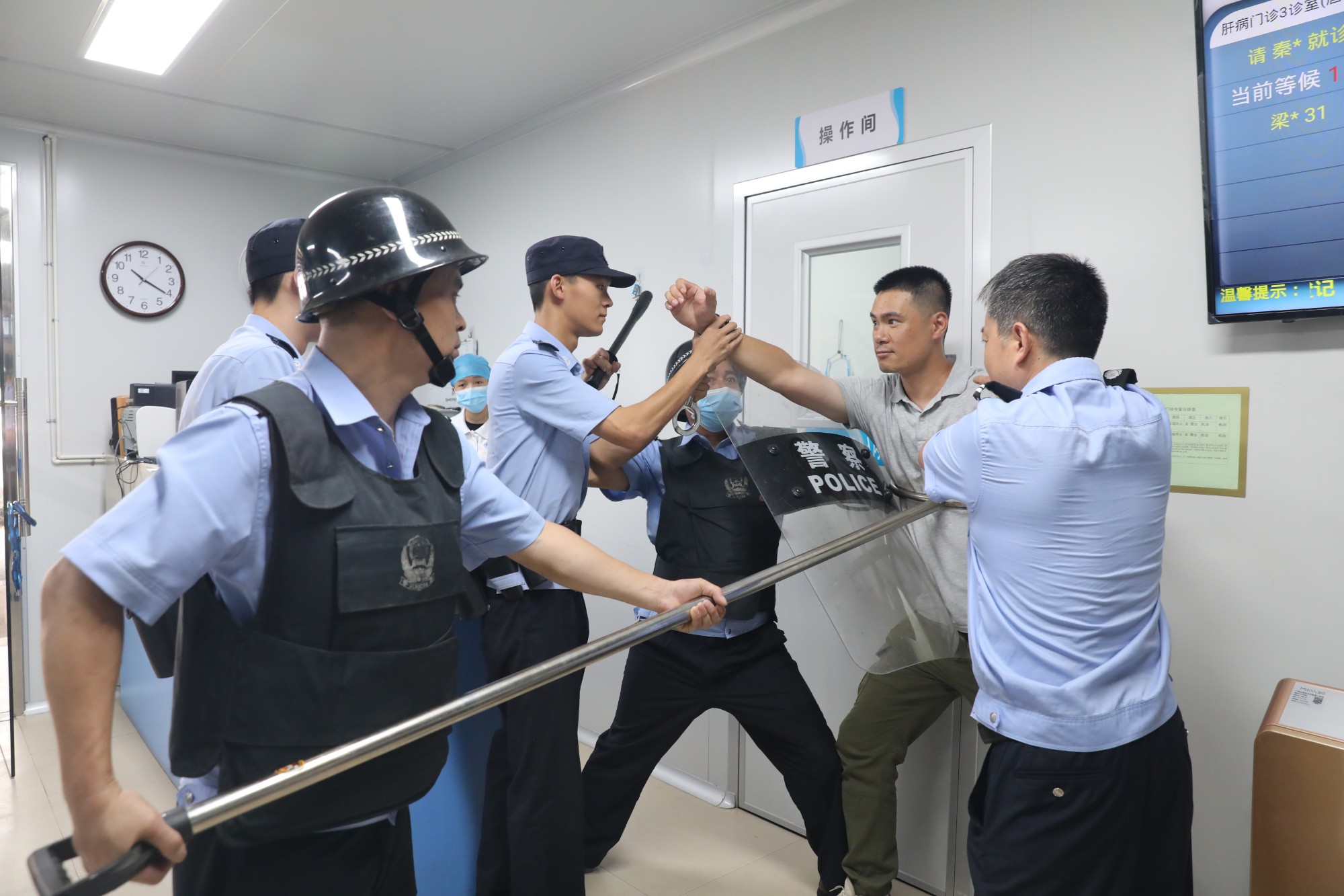 为检验医院安全保卫人员的防恐防暴能力,正确合理处置突发治安事件,提高快速反应和应对能力。7月12日,广西壮族自治区南溪山医院联合桂林市公安局象山分局在医院门诊组织开展“警医联动”应急演练。此次演练采取不预先通知的方式进行。