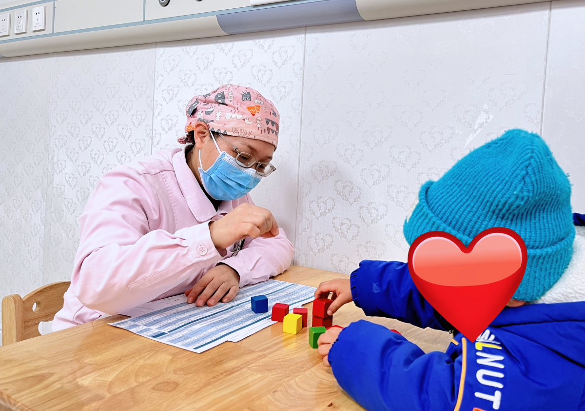 语言治疗师邹萍萍为孩子进行发育评估