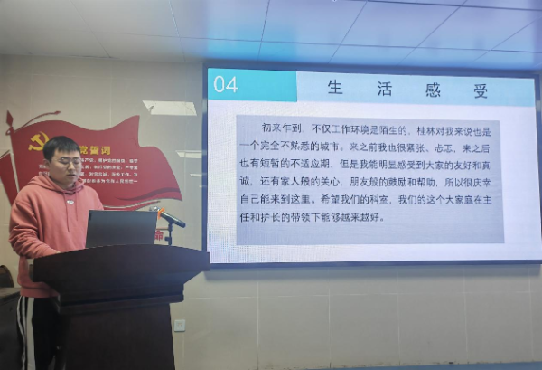 活动伊始,放射治疗科三位2022年新入职的临床医生进行了述职汇报,总结了自身工作工作成果与亮点,提出了存在的问题和不足,并对下阶段工作规划提出设想和展望。