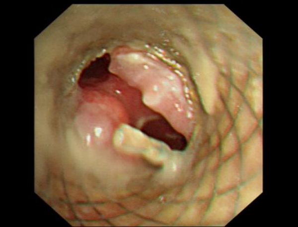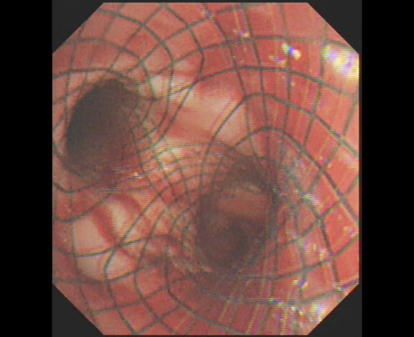 林先生因肺癌导致主气道严重狭窄,曾接受直筒覆膜支架植入术,然而肿瘤进展浸润支架远端,导致气道再次出现严重狭窄,使他再次陷入咳嗽、气促的痛苦中,生活质量明显下降,呼吸与危重症医学科一病区佘巍巍主任认为,必须尽快更换支架,否则随时可能窒息。