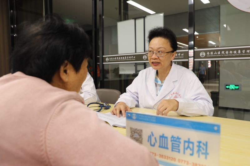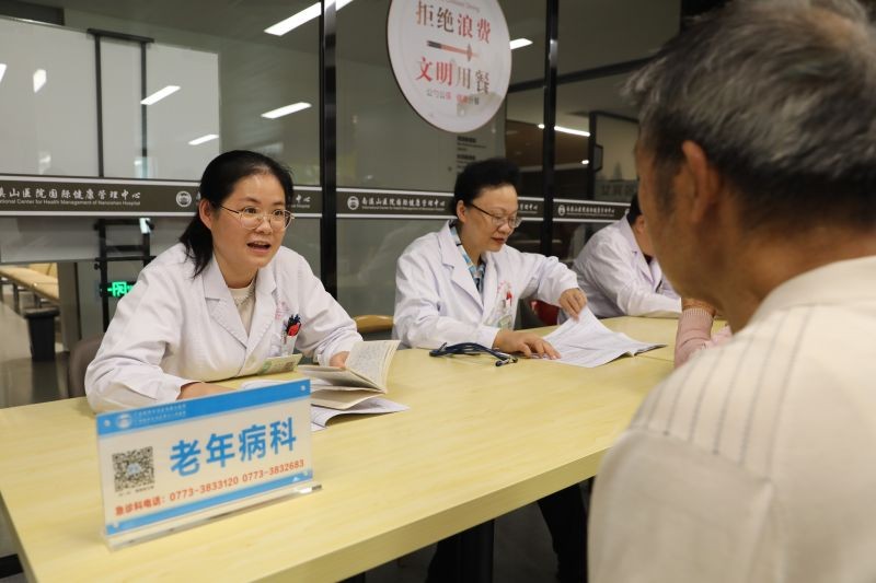 老年病科医生为老职工分析体检报告 伍家琪 摄