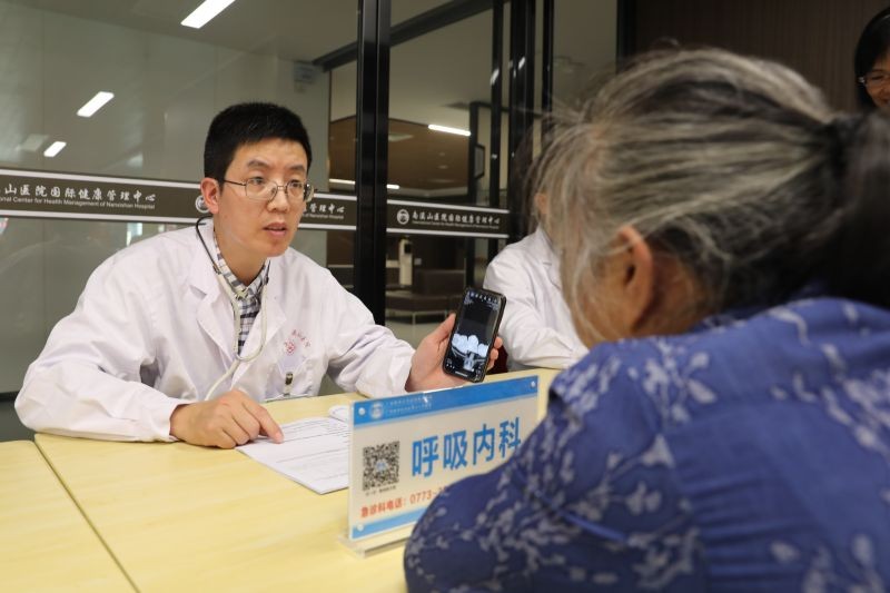 呼吸与危重症医学科医生为老职工提供健康服务 伍家琪 摄