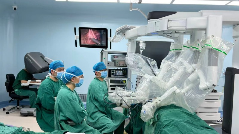 面对如此年幼的患者,手术难度和风险无疑都大大增加。然而,南溪山医院泌尿外科拥有先进的武器——桂北地区首台达芬奇机器人。这台被誉为“手术神器”的设备,为这场高难度手术提供了有力保障。达芬奇机器人手术系统具备高清3D成像技术,能够将手术视野放大数倍,呈现出极为清晰的立体画面,让主刀医生廖松柏博士对患儿体内精细的组织结构一目了然。其机械臂操作灵活,具有7个自由度,可在狭小的空间内精准模拟人手动作,且稳定性极高,能有效避免因手部颤动而产生的误差,极大地提高了手术的精准度与安全性。对于年仅3岁、身体各器官尚在发育阶段的患儿来说,达芬奇机器人的这些优势显得尤为关键。