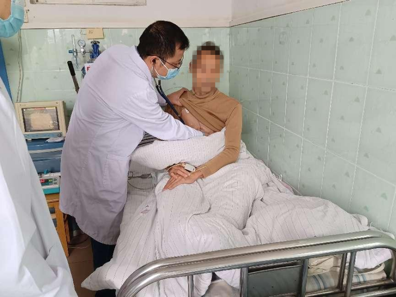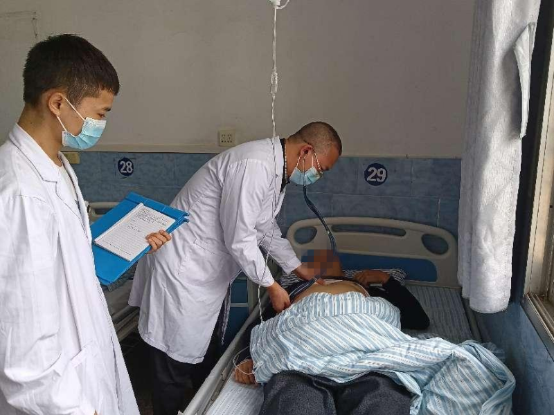老年病科副主任医师周国庆为急性心梗患者查体