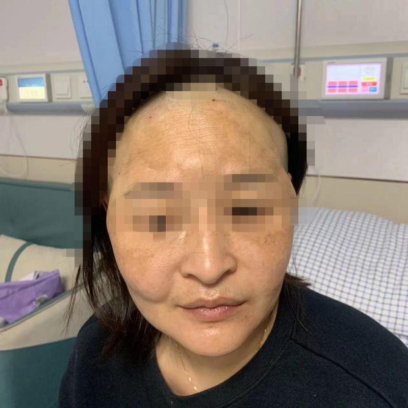 人到中年的秦女士(化名)为了让自己的皮肤更紧致动人,满心期待地到一处私人美容场所注射了奥美定,随着时间推移,10年后,却发现自己的脸和额头出现了不规则的凸起,笑起来时面部肌肉僵硬,这顿时让她崩溃不已,于是她急忙到广西壮族自治区南溪山医院就诊。在医院医学美容门诊,黄相主任为秦女士进行了细致检查,并不停安慰焦躁不已的她,为她制定了美容修复手术方案。第二天,黄相主任带领团队为秦女士施行了手术,取出异物并进行面部拉皮,手术顺利结束后还安排她住进了特需医疗服务中心病房,热情细心的特需服务让她的焦虑情绪缓解不少。术后第7天拆线后,秦女士惊喜不已,感叹终于得救了。术后15天复诊时,秦女士的面部已经完全消肿。