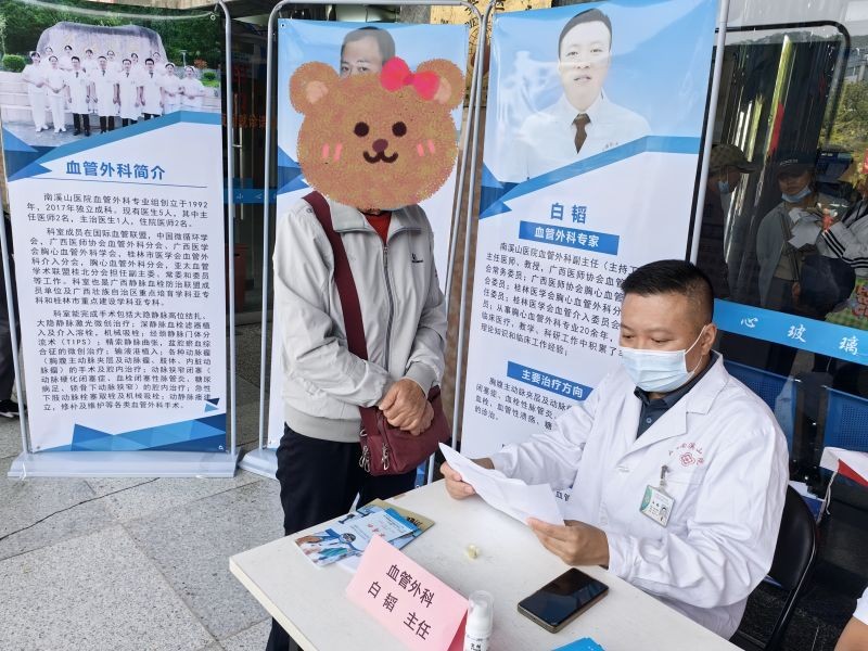 今年10月13日是第十个世界血栓日,为呼吁人们重视血管健康、警惕血管病变,并主动管理自身的血管健康水平,广西壮族自治区南溪山院血管外科在医院门诊开展了主题为“栓’不住,动起来”的义诊科普活动。