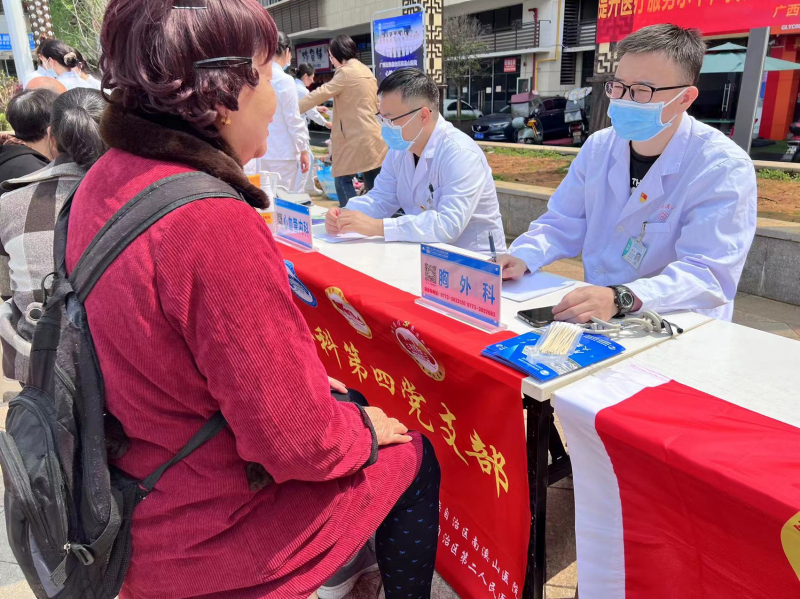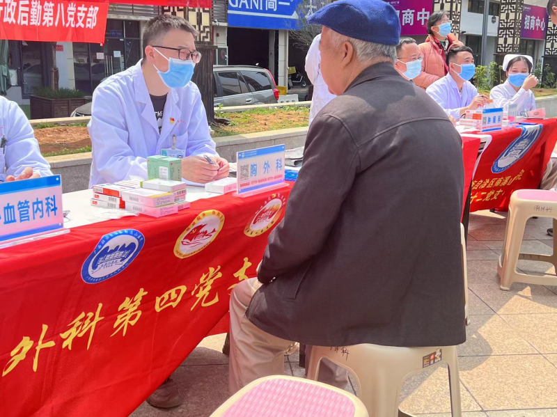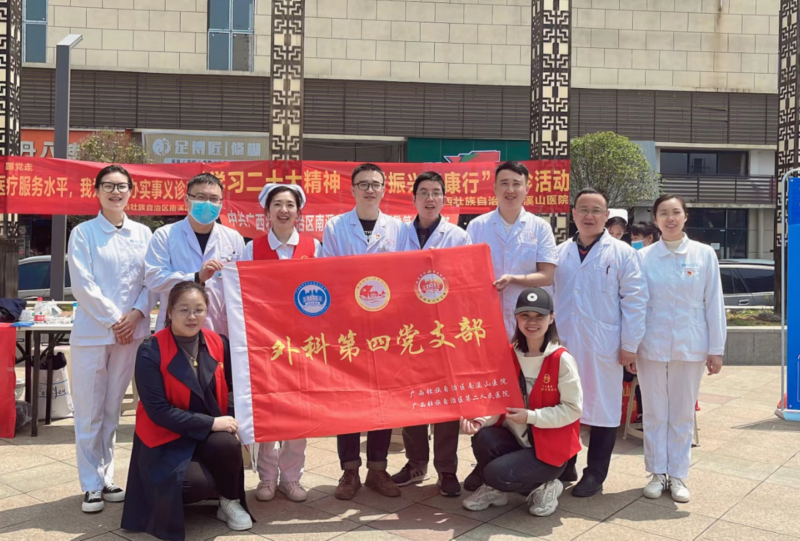 为积极响应二十大精神,实现好群众看病就医满意度争先进位工作目标,助力“乡村健康行”建设,4月8日,广西壮族自治区南溪山医院胸外科组织多个科室联合党员医疗服务队到全州县开展“学习二十大精神,振兴乡村健康行”活动,让群众在家门口就能享受到优质的医疗和健康指导服务。行政后勤第八党支部书记门诊监察室主任蒋玲、外科第四党支部胸外科副主任许可,内科第十五党支部书记呼吸内科二病区护士长朱雯,科主任屈东明等参加活动。