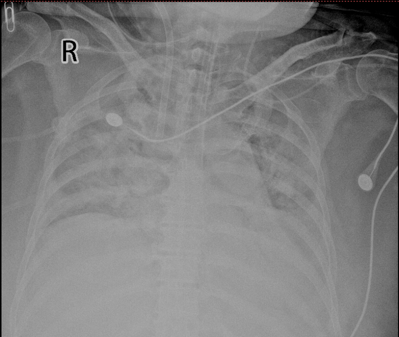 今年1月,赵阿姨因“感冒”症状到自治区南溪山医院呼吸与危重症医学科二病区就诊。经检测,她被确诊为甲型流感病毒感染。然而,病情迅速恶化,她的肺部出现严重感染,形成“大白肺”,导致急性呼吸衰竭,血氧饱和度骤降至66%,氧合指数仅为39mmHg,生命危在旦夕。