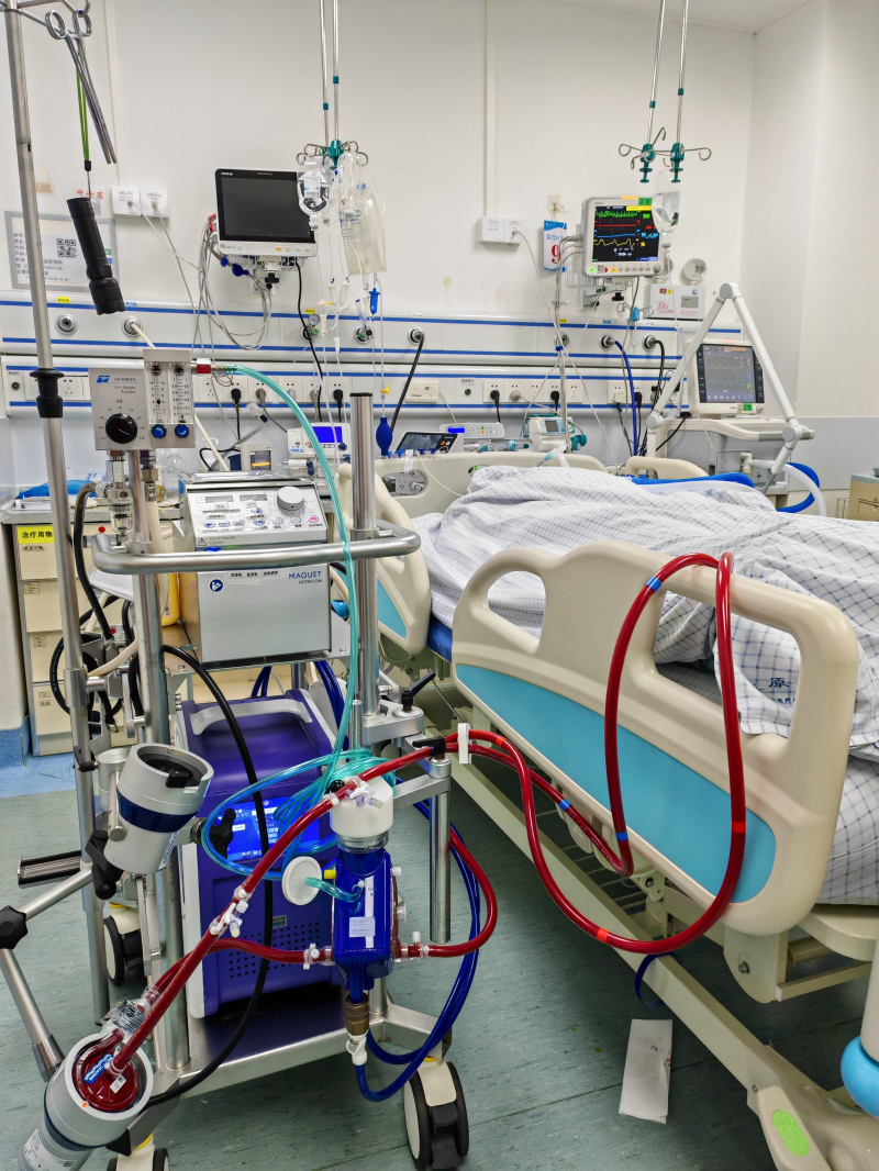 面对如此凶险的病情,呼吸与危重症医学科二病区主任屈东明立即联系综合重症医学科主任韦妍飞进行会诊。经评估,赵阿姨被诊断为:急性呼吸窘迫综合征(重度)、重症肺炎、甲型流感病毒感染(重症)、I型呼吸衰竭。此时,常规呼吸机治疗已无法维持她的生命,必须采取更积极的救治手段。