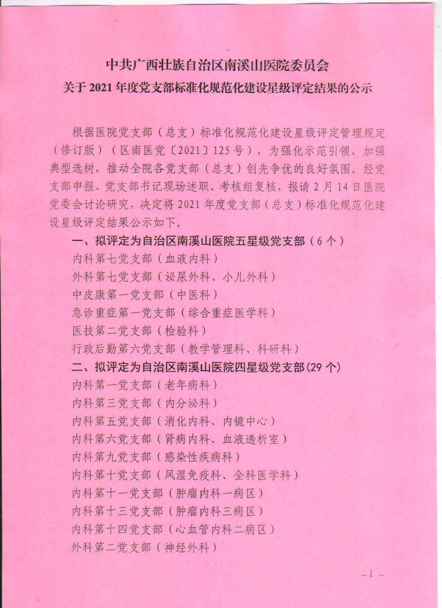 关于2021年度党支部标准化规范化建设星级评定结果的公示