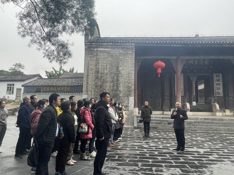1.灵川县委党校副校长伍银生讲解灵川县江头村爱莲家祠的清廉文化。医院供图