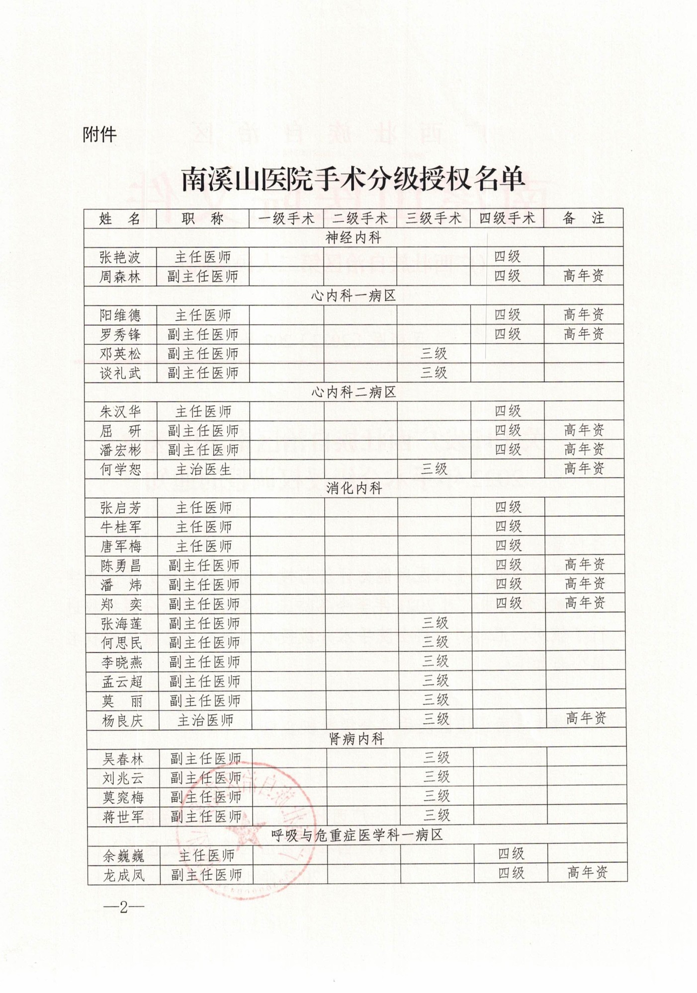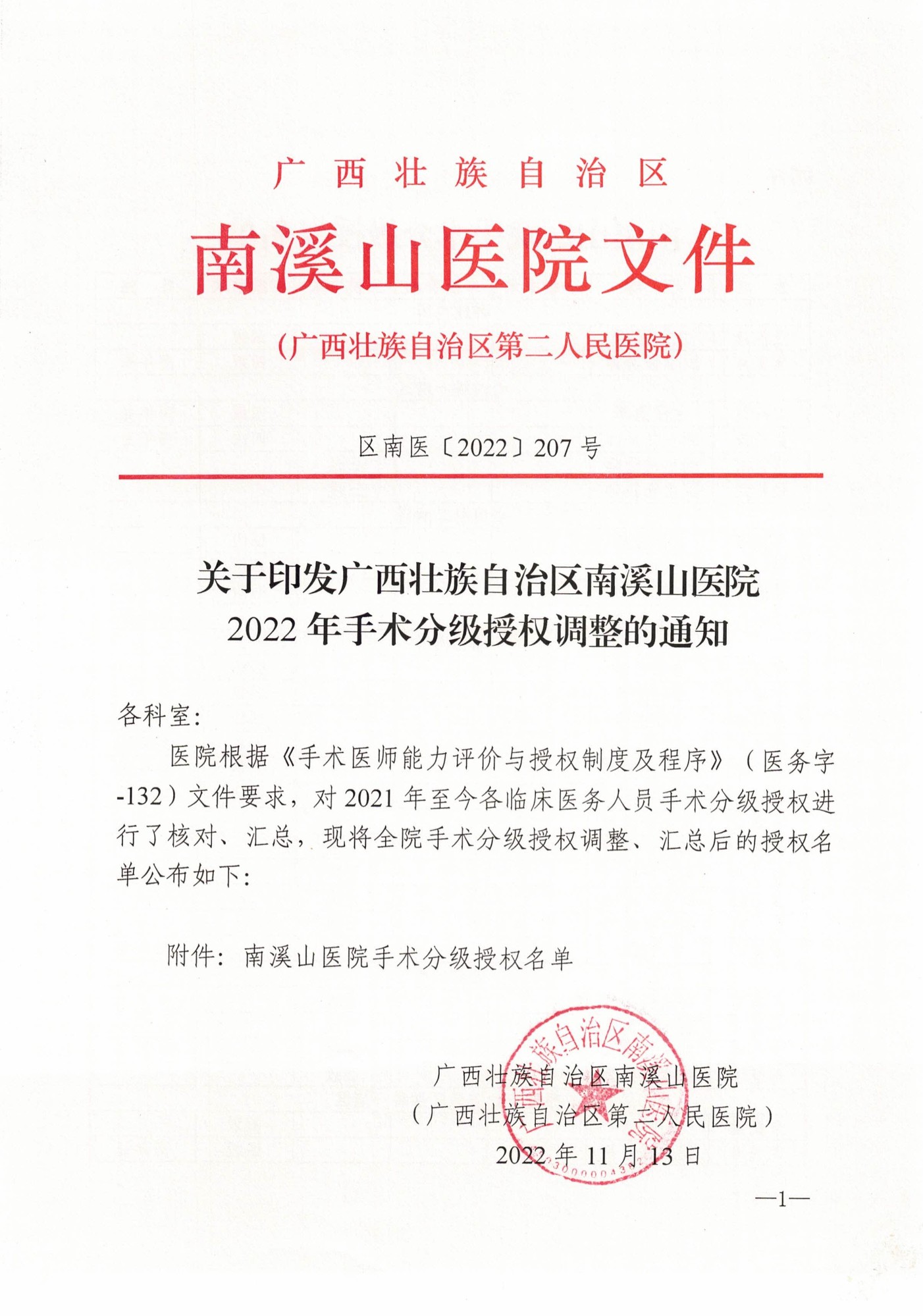 区南医〔2022〕207号关于印发广西壮族自治区南溪山医院2022年手术分级授权调整的通知
