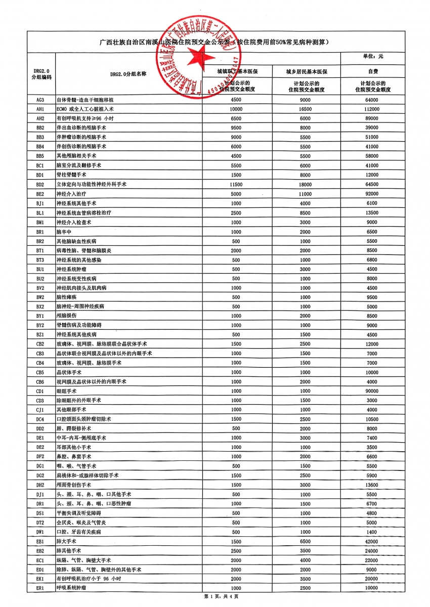 广西壮族自治区南溪山医院(广西壮族自治区第二人民医院)住院预交金公示