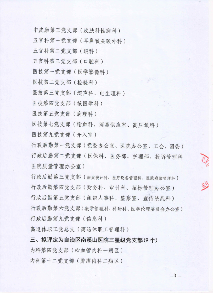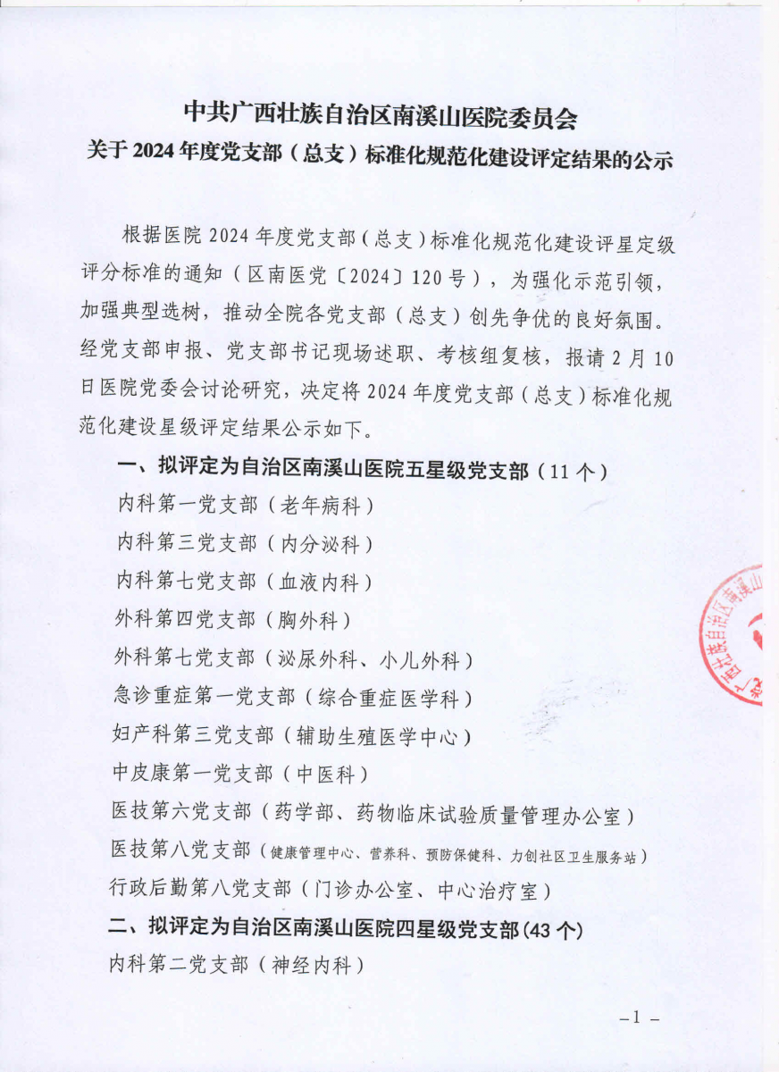 中共广西壮族自治区南溪山医院委员会关于2024年度党支部 (总支)标准化规范化建设评定结果的公示