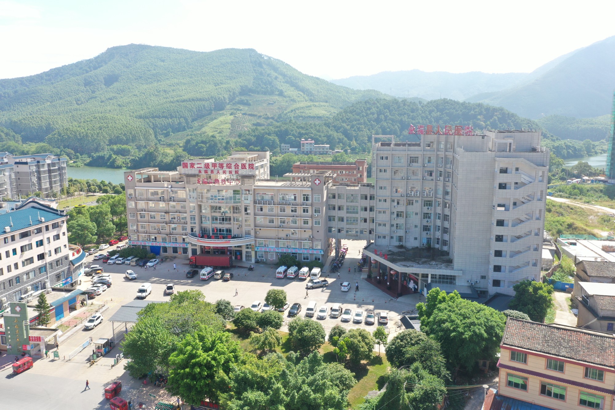 永福县人民医院位于永福县迎宾路132号,是全县最大的公立综合性二级甲等医院,全院占地面积49950m2,建筑面积32500 m2,业务用房面积27200m2。