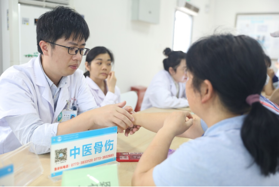 自治区南溪山医院针对桂林大行环新型材料技术有限公司员工的特点,组织了妇产科、骨科、皮肤、中医等多个科室的专家,为员工提供免费的医疗服务。