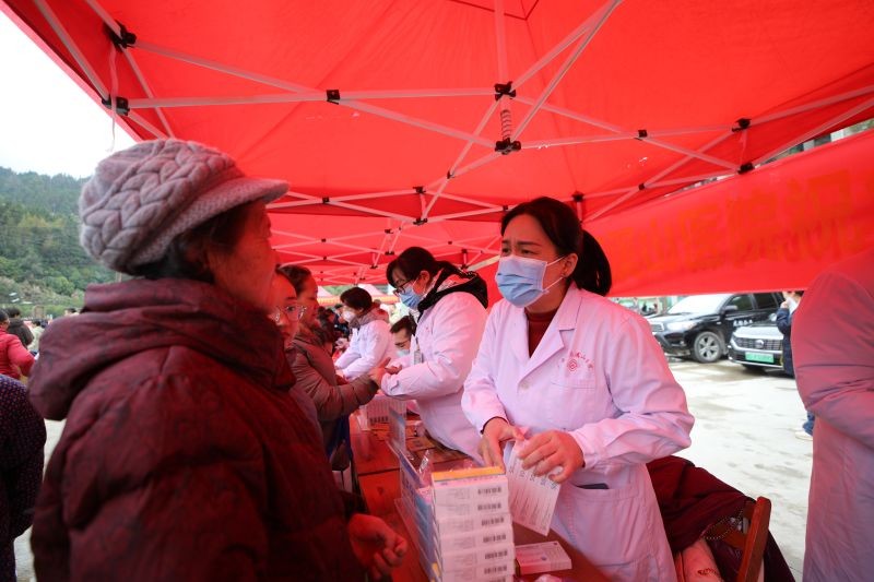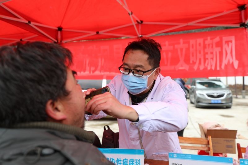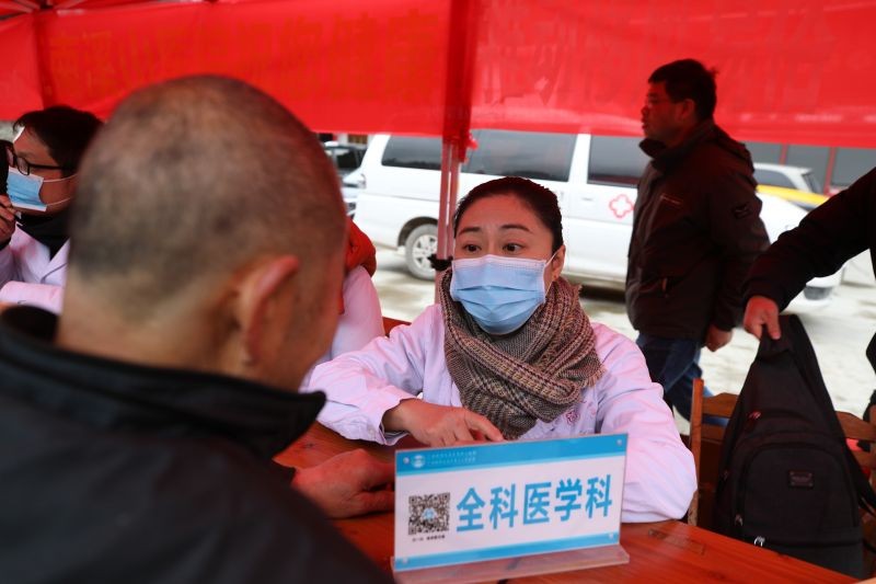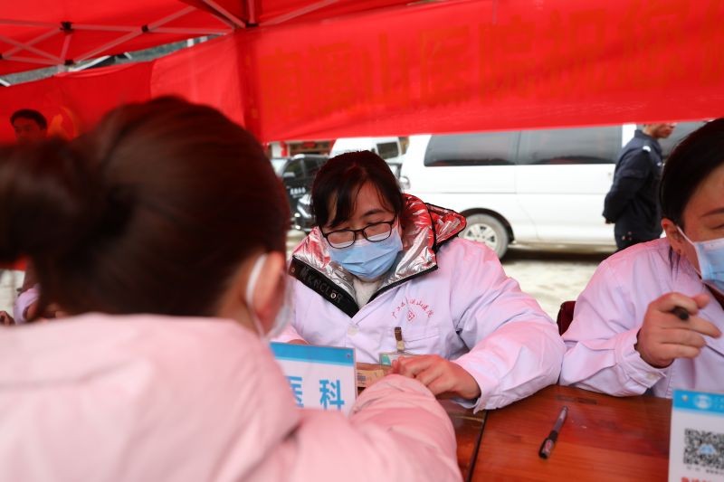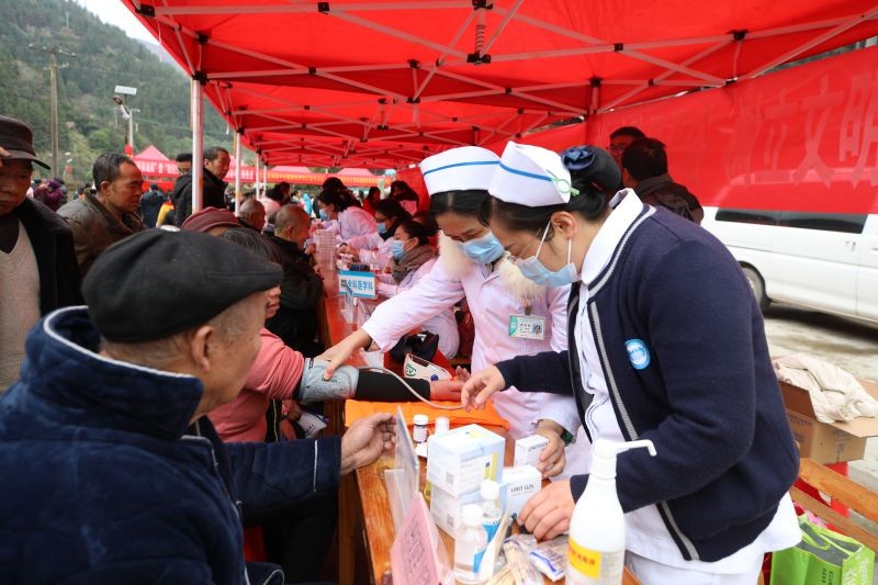 自治区南溪山医院医务人员正在为村民量血压、测血糖、进行义诊