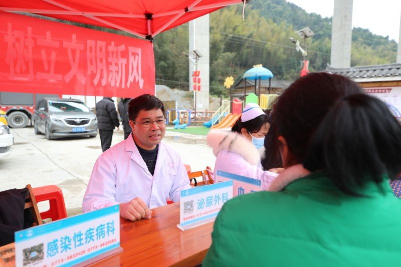 1月27日,由自治区卫生健康委、自治区文明办主办的2024年广西“文明暖心·健康义诊”暨“我们的节日·平安喜庆过大年”活动在龙胜各族自治县马堤乡马堤村主会场成功举办。自治区南溪山医院党委书记柳宏林带领18名医务人员参加主会场活动,并为当地百姓送医送药送健康,深受百姓欢迎。