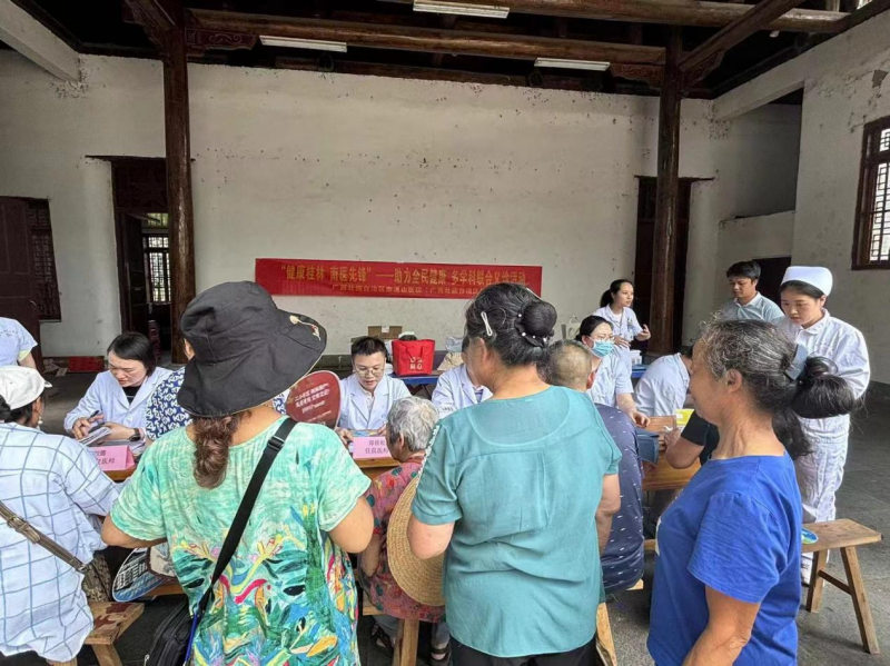 近日,广西壮族自治区南溪山医院中皮康第三党支部、内科第六党支部,冒着烈日酷暑到恭城县莲花镇老舞台村开展“健康桂林 南医先锋”——助力全民健康,多学科联合义诊活动。