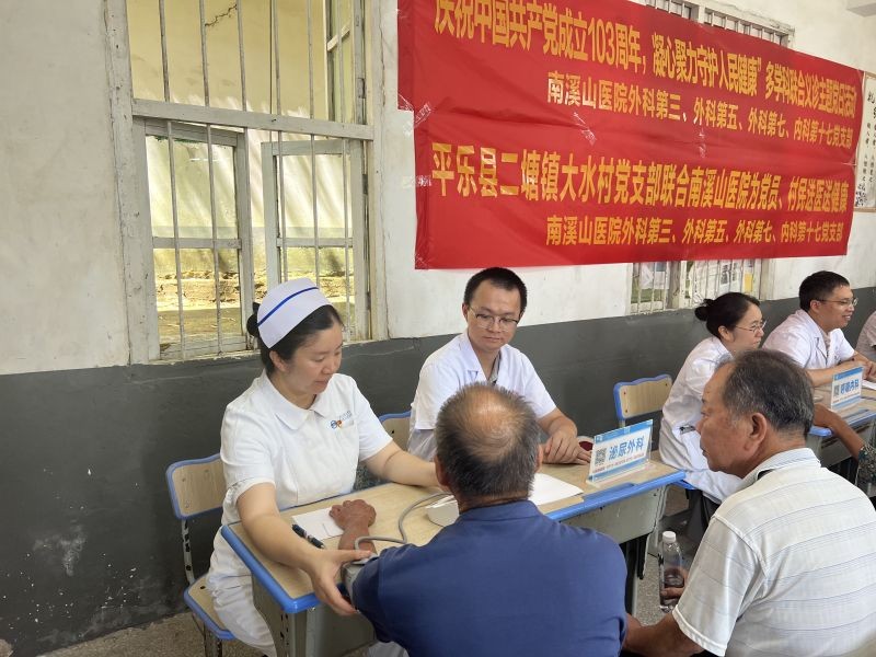 初心践使命,义诊当先锋。7月7日上午,广西壮族自治区南溪山医院组织多个党支部专家团队到平乐二塘镇大水村开展“庆祝建党103周年,义诊进乡村,服务暖人心”为主题的义诊活动。义诊活动汇聚心脏大血管外科、泌尿外科、脊柱外科、呼吸与危重症医学科三病区4个学科。