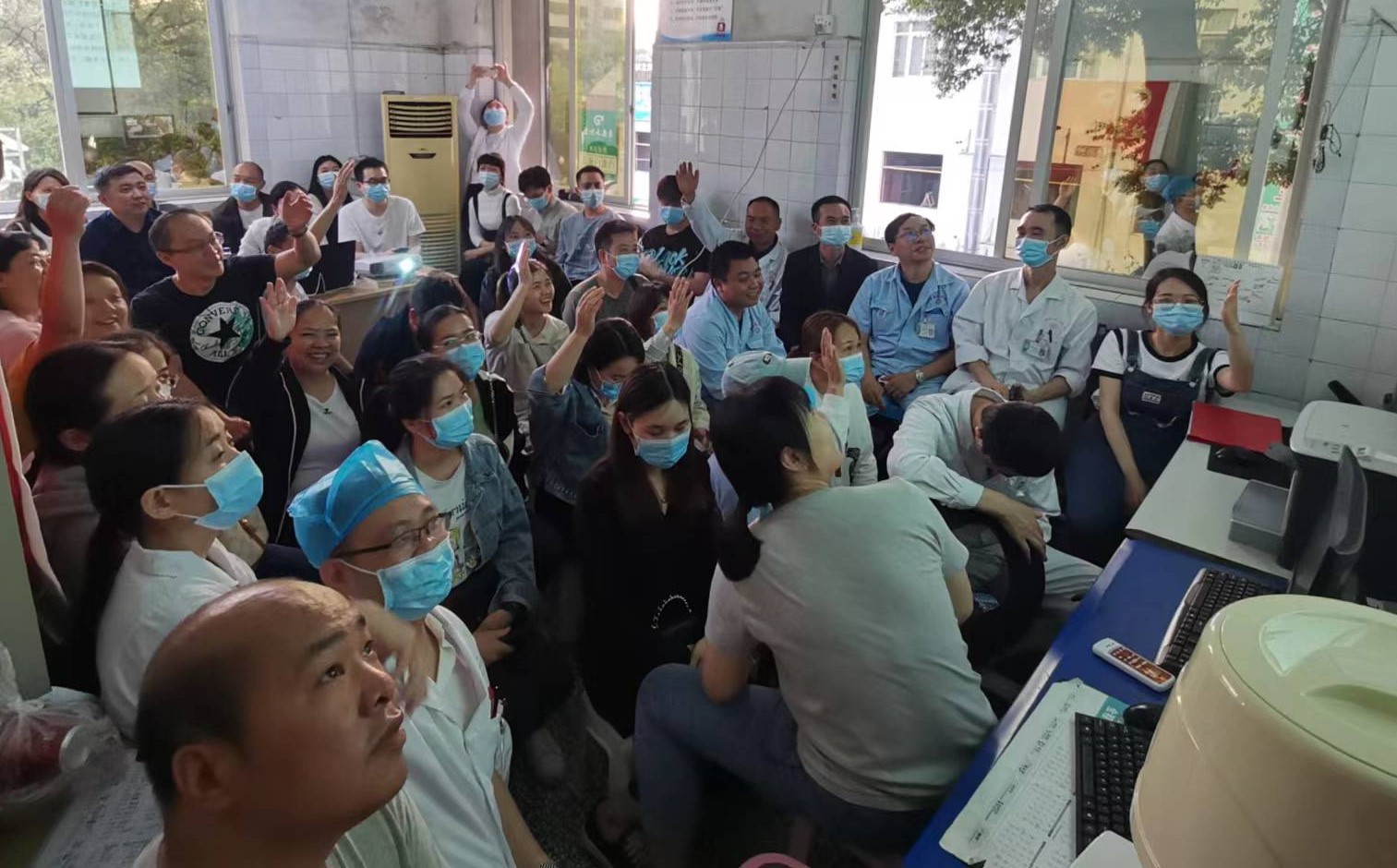 随后,支部书记朱文娟组织全体医务人员共同学习消防安全相关文件,熟悉消防安全、火灾扑救知识及灭火方法,结合身边的典型案例,督促支部人员切实履行消防职责,加强消防督查,做到日常巡查,防患于未然。
