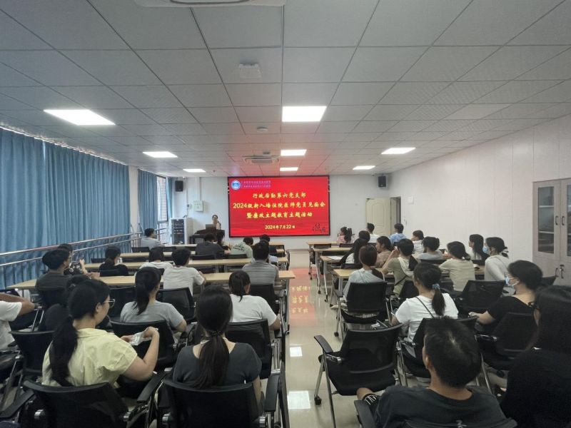 为欢迎2024级新入培住院医师党员,7月22日,行政后勤第六党支部在教学科研综合楼二楼PBL教室召开党员见面会。
