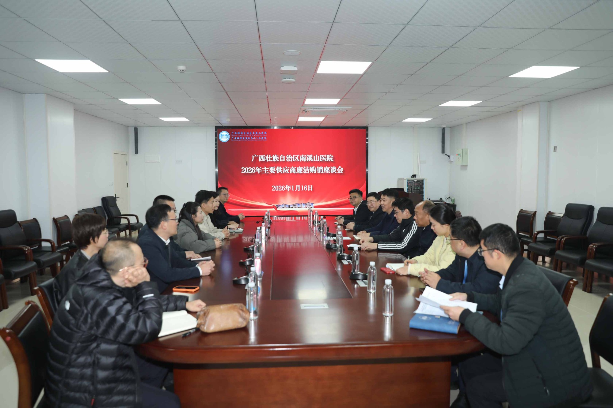 为深入贯彻落实全面从严治党要求,进一步规范购销合作秩序,强化源头防腐治腐,营造风清气正的合作环境,1月16日下午,自治区南溪山医院党委、纪委组织召开2026年主要供应商廉洁购销集中廉政约谈及座谈交流会。医院主要供应商代表、相关业务部门负责人及纪检监察部门工作人员参加会议。