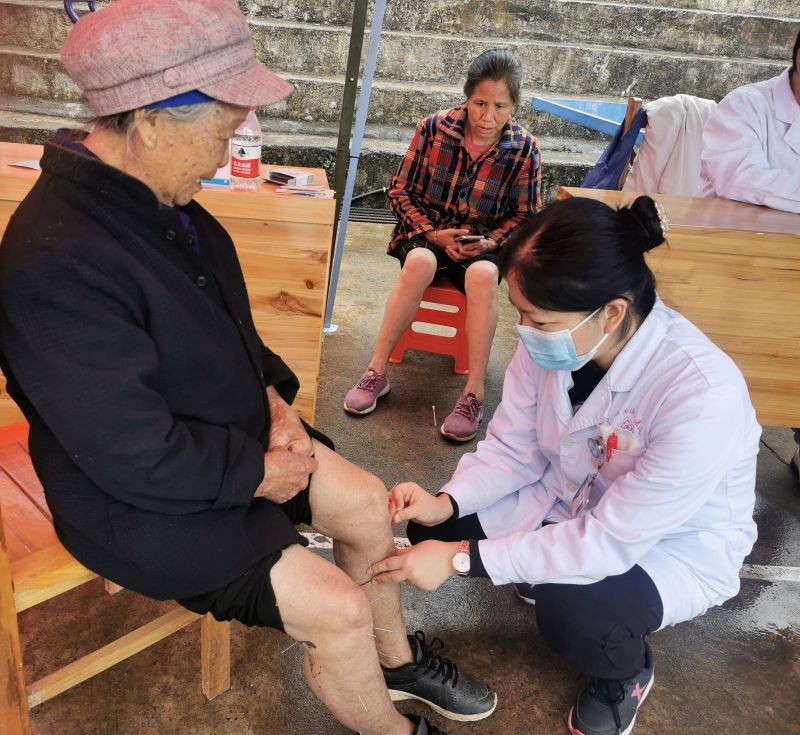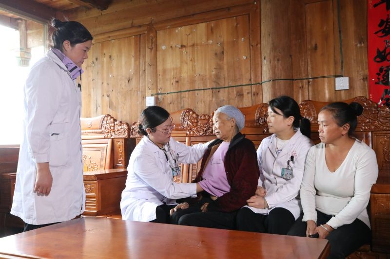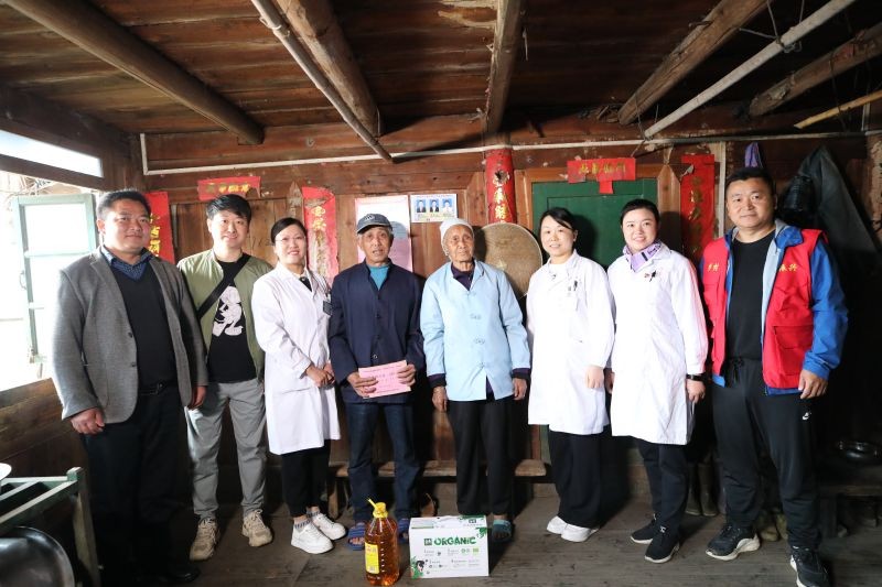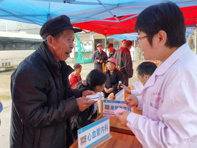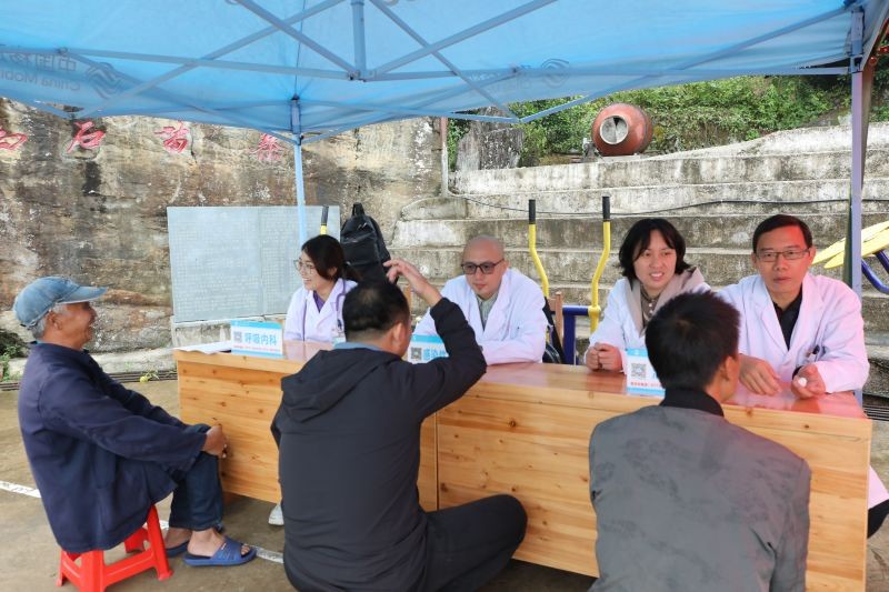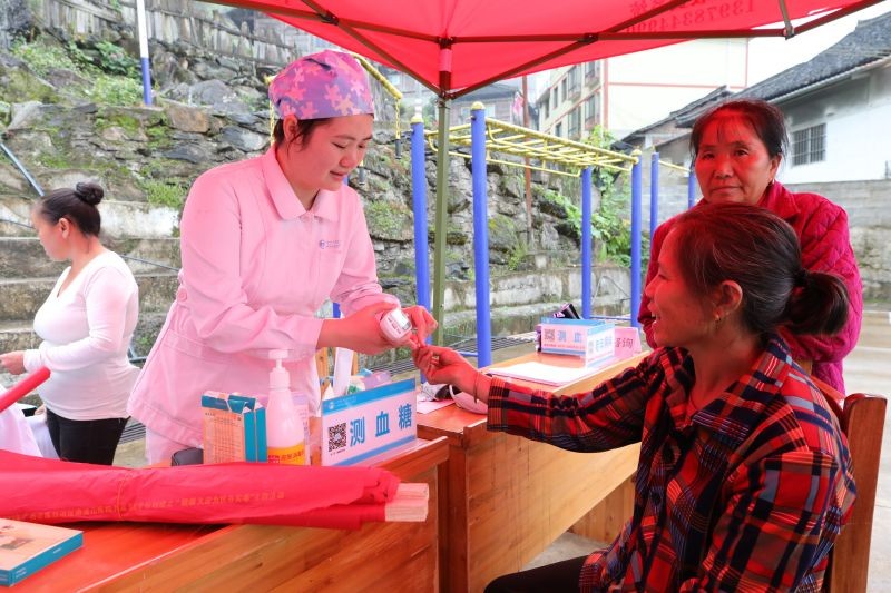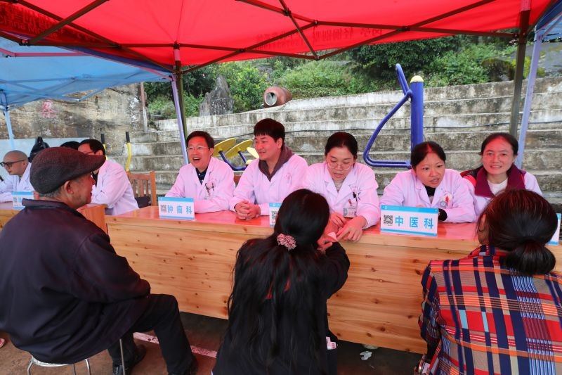 上门慰问结束后,该院医护人员在凉坪村鸦石组开展义诊送健康活动,来自内科和中皮康等多个支部的医护人员为当地村民进行义诊送药,专家们耐心地解答相关健康和保健问题并提出专业的指导建议,护理人员则免费为当地村民量血压、测血糖,赠送药品,让他们树立正确的健康理念。对于行动不便的患病群众,医护专家们还专门到家中为他们义诊。