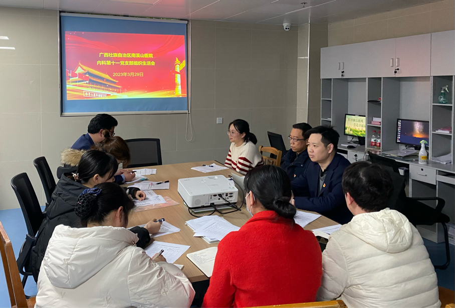 为全面贯彻执行习近平新时代中国特色社会主义思想,深入学习第十四届全国两会精神,进一步提高党员党性觉悟和思想认识,3月29日下午,广西壮族自治区南溪山医院内第十一党支部召开2022年度组织生活会暨党员民主评议会,开展批评与自我批评,医院党委委员、党办主任丁少敏到会指导。