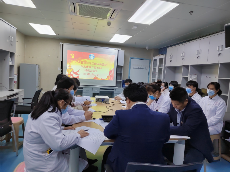3月27日,广西壮族自治区南溪山医院中皮康第二党支部召开2022年度组织生活会暨民主评议党员工作会议,医院党委委员、党委办公室主任丁少敏到会指导。