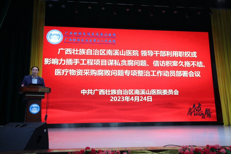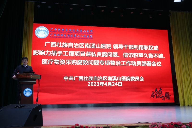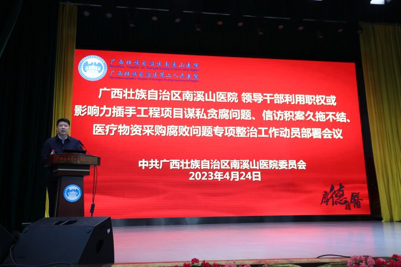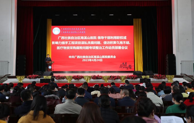 为深入贯彻党的二十大关于全面从严治党的战略部署以及自治区卫生健康委党组有关要求,全面深化清廉医院建设。4月24日,自治区南溪山医院党委召开领导干部利用职权或影响力插手工程项目谋私贪腐问题、信访积案久拖不结、医疗物资采购腐败问题专项整治工作动员部署会议。医院全体党政领导班子成员,各党支部书记、纪检委员,全体中层干部和重点岗位关键部门工作人员近300人参加本次会议。