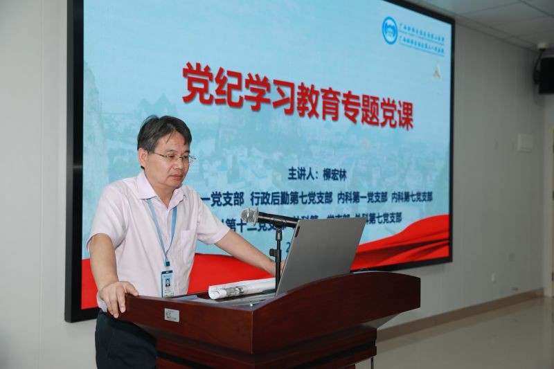 为深入开展党纪学习教育,提升党员干部纪律意识和规矩意识,7月23日,自治区南溪山医院党支部联合开展党纪学习教育主题党日活动,医院党委书记柳宏林为联系的七个党支部(行政后勤第一、第七党支部,内科第一、第七、第十二党支部,外科第一、第七党支部)共60名党员上党纪学习教育专题党课。