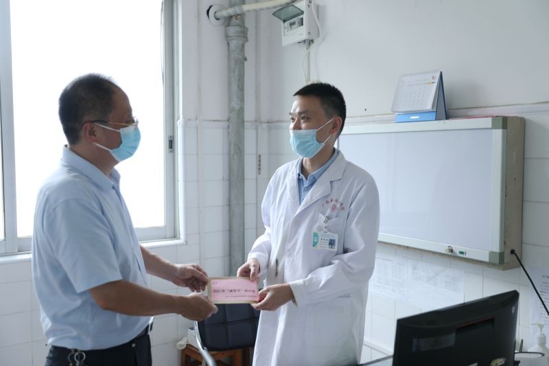 护佑健康助拥军。医院党团员和医疗专家多次受邀到军营开展医疗保障服务,将健康义诊、健康讲座送进军营,走进部队大院、军休所进行专场健康服务。为方便军人就诊,门诊等窗口实行“军人优先”,并对来看病就诊的退役军人、军属、学员、教职员提供各种便利;同时,每年还承担春季、秋季征兵体检工作。在新中国成立70周年之际,联合象山区人民政府、人民武装部开展“迎接国庆、致敬军人、关爱功臣”拥军健康体检活动,免费为象山区116名荣获二等功及以上功勋的退伍军人体检,为1988名荣获三等功的退伍军人提供体检优惠。