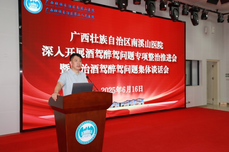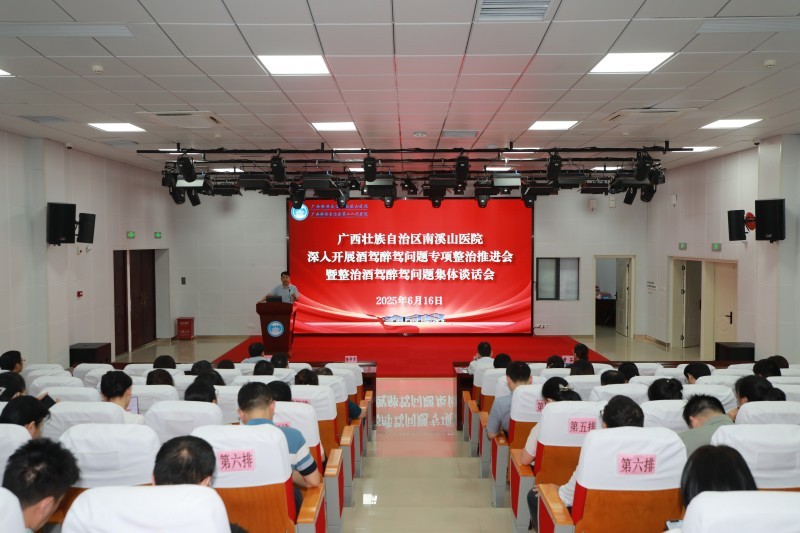 为推动深入贯彻中央八项规定精神学习教育走深走实,强化干部职工的纪法意识,筑牢思想防线,杜绝酒驾醉驾问题发生。6月16日,广西壮族自治区南溪山医院召开酒驾醉驾问题专项整治推进会暨整治酒驾醉驾问题集体谈话会。医院全体领导班子成员、中层干部参加会议。