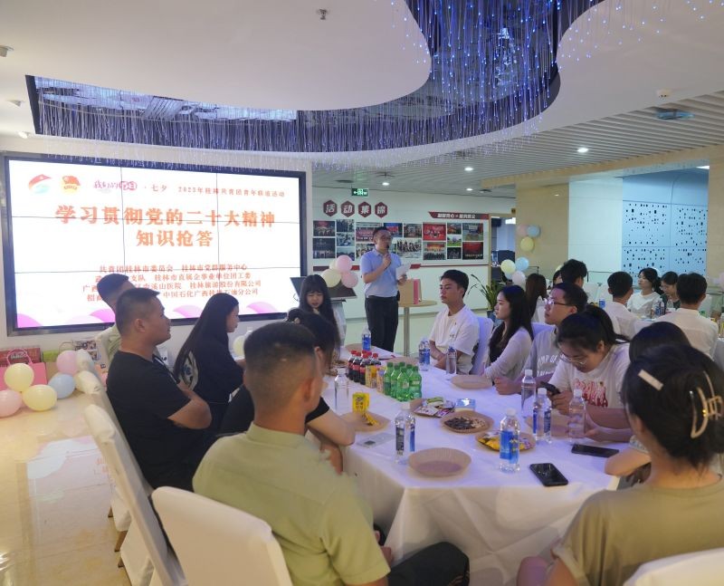 在传统节日“七夕”来临之际,为更好地发挥共青团组织服务青年的职能,丰富单身青年业余文化生活,8月18日下午,自治区南溪山医院团委联合桂林市青少年社会服务中心组织开展了“学思践悟二十大,青春奋进新征程”主题团日活动暨“青春携手,相约七夕”青年联谊活动。来自武警桂林支队及市直属企事业单位团工委三组相关单位的50多名青年相聚一堂,共话青春。