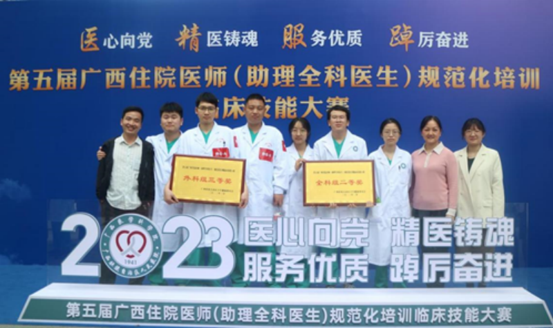 医院自2017年成为第二批国家级住院医师规范化培训基地,目前共有17个住院医师规范化培训专业基地,分别为内科、儿科、急诊科、皮肤科、神经内科、全科、重症医学科、外科、外科(神经外科方向)、外科(胸心外科方向)、骨科、妇产科、耳鼻咽喉科、麻醉科、放射科、超声医学科和核医学科。医院重视过程管理,强调教学质量,注重培训内涵,在2021年参加广西住院医师(助理全科医生)规范化培训临床技能大赛,获得“手术组二等奖”、“非手术组三等奖”,在2023年获得“全科组二等奖”、“外科组三等奖”,2024年度住培结业考核通过率达98.57%。