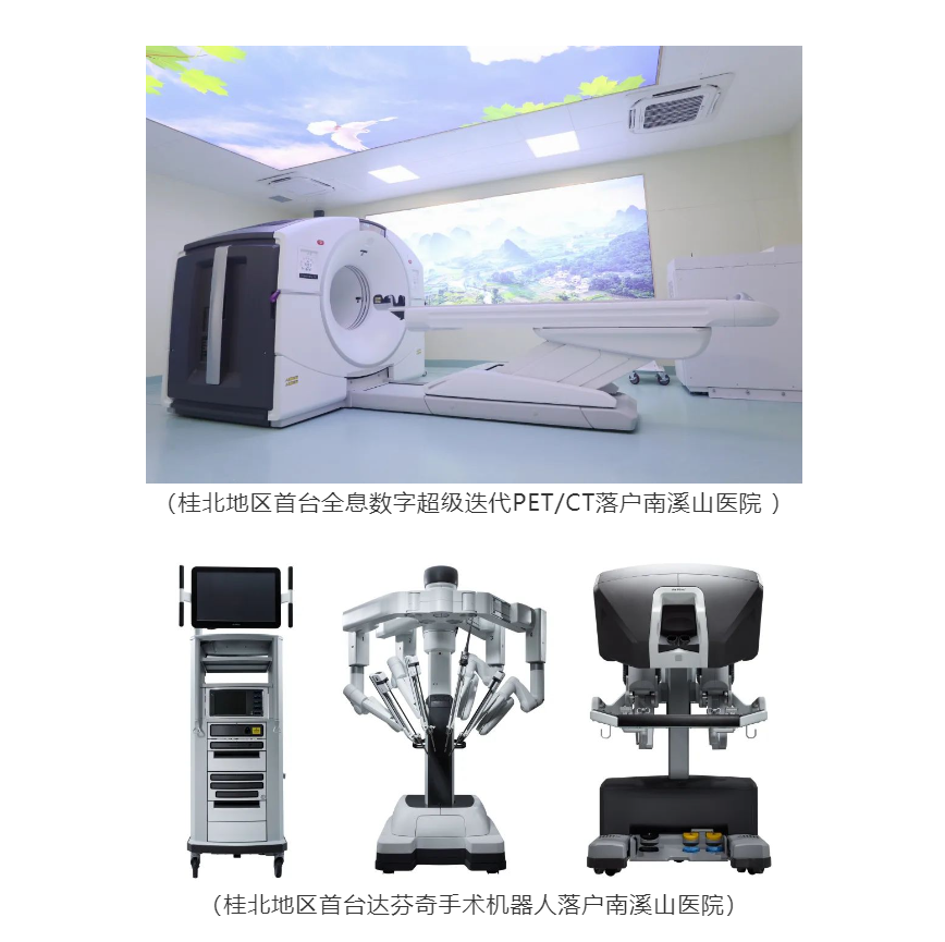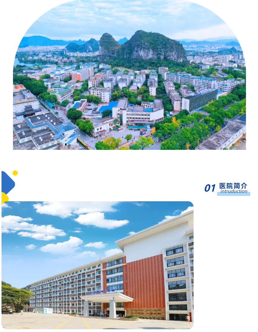 医院现有崇信、雁山(公共卫生应急救治中心)两个院区,可开放床位2120张,在职职工2200余人,其中高级职称600余人,博士研究生50余人、硕士研究生400余人,设有临床科室49个,医技科室15个,现有国家级住培专业基地17个,研究生培养学科11个,自治区级重点专科(学科) 20个,是广西博士后创新实践基地。拥有达芬奇手术机器人、全息数字超级迭代PET/CT、可视化四维影像引导医用直线加速器、神经外科手术机器人、高端科研型3.0T磁共振、体外膜肺氧合(ECMO)等先进医疗设备。医院大力推进“院有品牌、科有特色、人有专长”建设,现已建立心血管系统疾病、神经系统疾病、呼吸系统疾病、运动系统、肿瘤相关专业等5个优势学科群。聚焦精准医学,建成达芬奇手术机器人微创外科中心、PET/CT疾病分子诊断中心、人工智能精准放射治疗中心、医学3D打印创新研究中心。成功开展达芬奇手术机器人辅助下的腔镜微创手术等多项国内先进诊疗技术。是国家胸痛中心认证医院、国家卒中中心认证医院、卫生部国际紧急救援中心网络医院、国家级流感监测网络哨点医院、国家疼痛综合管理试点医院、国家疼痛质控中心哨点医院、中国心血管技术协作培训中心选定的小儿先天性心脏病技术协作单位、北京天坛医院微创神经外科技术推广中心、自治区卫健委授权农村儿童先天性心脏病接入及手术收治单位、自治区级产前诊断单位、广西互联网医疗建设慢病中心、广西高等医学院校A级教学医院、桂林国家旅游综合试验区重点医院、桂林市疼痛医学质控中心、桂林市危重新生儿救治中心、桂林市放射诊疗安全示范医院。
