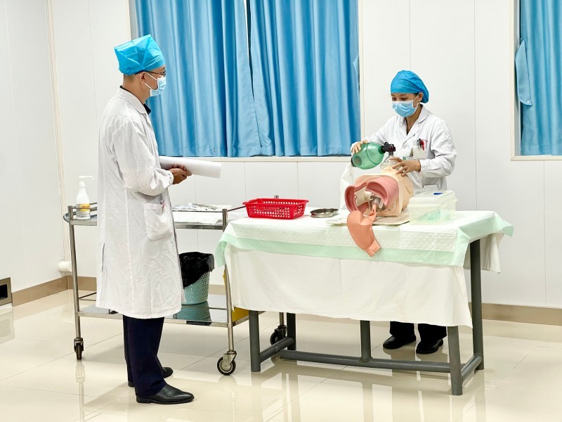 医院医疗设备完善,师资力量雄厚,每年对全院住培师资进行培训,并积极组织住培带教老师参加国家级及区级师资培训,目前我院已拥有住院医师规范化培训师资证书的指导老师300余人,各专业基地设置全程导师制,为每位住培学员分配责任导师,负责学员培训过程中学习、工作、生活的全面指导。医院新建临床技能培训中心,占地面积3330㎡,涵盖内、外、妇、儿、急救及护理等模块,设有模拟ICU、模拟手术室、模拟产房、基础技能等实训室,并设有OSCE考站8个、独立自习室1间,配置有教学一体化平台,集教学、培训、考核于一体,为住院医师提供良好的操作训练平台和学习环境。另外,临床技能中心配备腔镜模拟器、腔镜器械、练习配套设备等,可以进行各种腔镜手术的训练,满足外科医师专科学习需要。