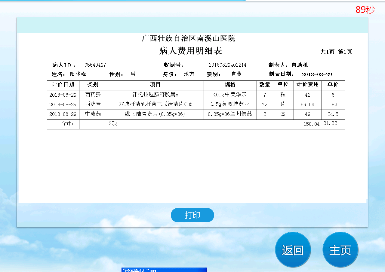 医院自助机打印门诊清单流程 2021-06-24 14:01系统 1.选择您需要的项目——【门诊清单】2.选择登录方式——比如【诊疗卡】3.插卡4.确认信息5.点击确定查看明细6.选择打印 扫一扫 看病更方便