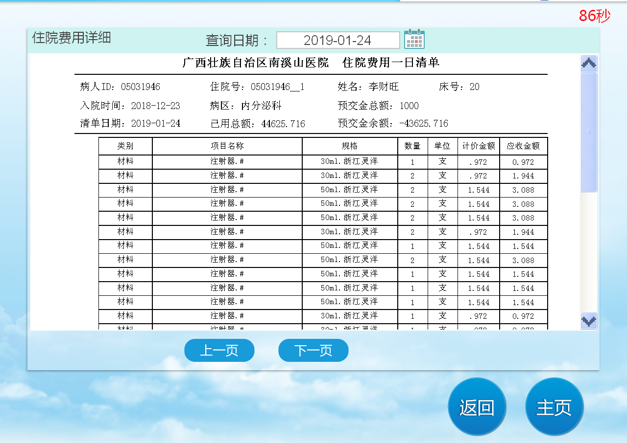 医院自助机查询住院费用