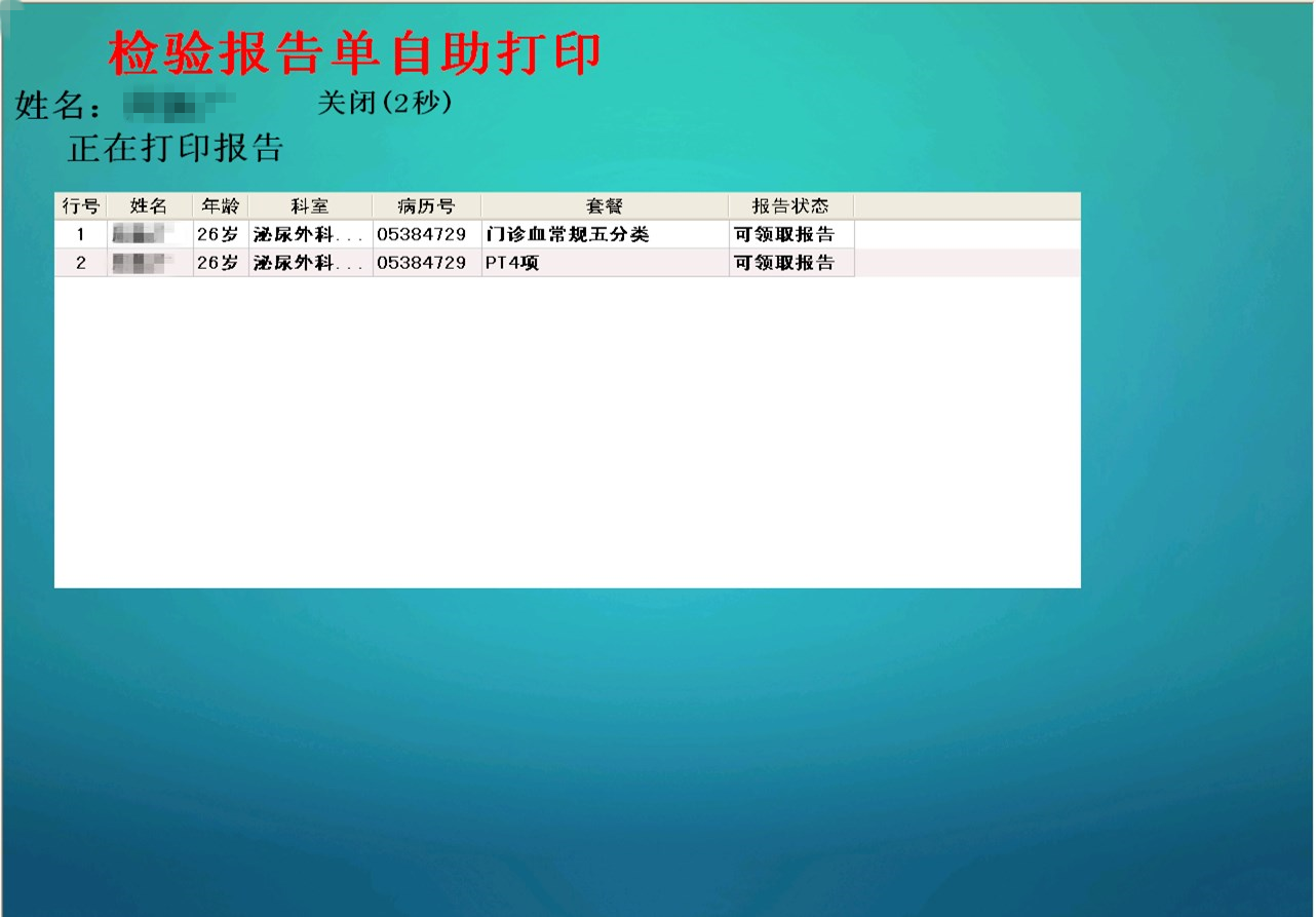 医院自助机打印检验报告流程