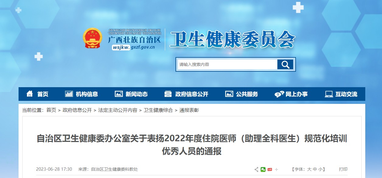 此次多人获得全区通报表扬,是对该院住培工作的充分肯定,也将激励医院住培工作者继续踔厉奋发、砥砺前行,为助力建设“健康广西”而不懈奋斗。