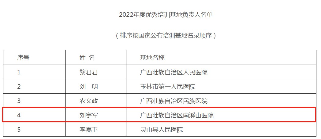 近日,自治区卫生健康委发布了关于表扬2022年度住院医师(助理全科医生)规范化培训优秀人员的通报。自治区南溪山医院共有9人获得通报表扬,其中党委副书记、院长刘宇军获评“2022年度优秀培训基地负责人”称号,教学管理科科长熊爱民获评“2022年度优秀住培管理工作者”称号,创伤骨科手外科主任张立获评“2022年度优秀专业基地主任”称号,血液内科副主任医师文健、全科医学科副主任医师温伶俐和急诊科副主任医师毛忠文获评“2022年度优秀指导医师”称号,教学管理科刘中伟获评“2022年度优秀住培通讯员”称号,麻醉科专业基地姜爽和儿科专业基地谭春贵获评“2022年度优秀学员”称号。