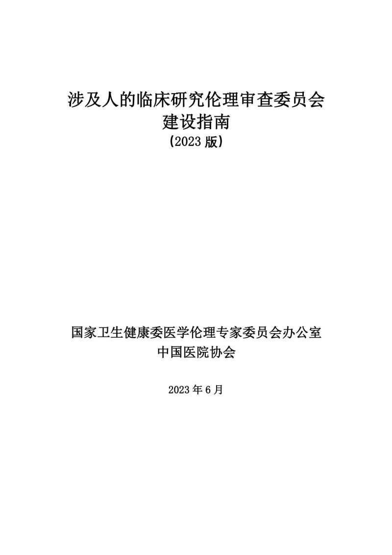 涉及人的临床研究伦理审查委员会建设指南(2023 版)