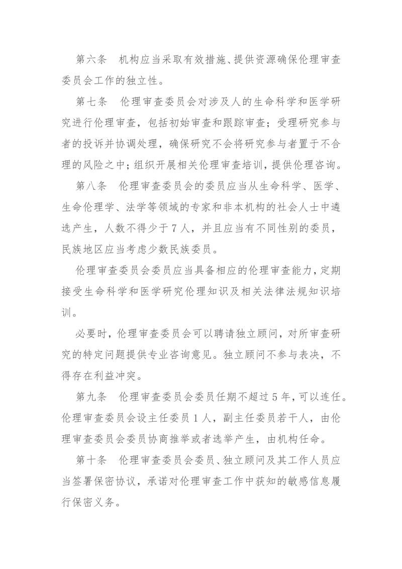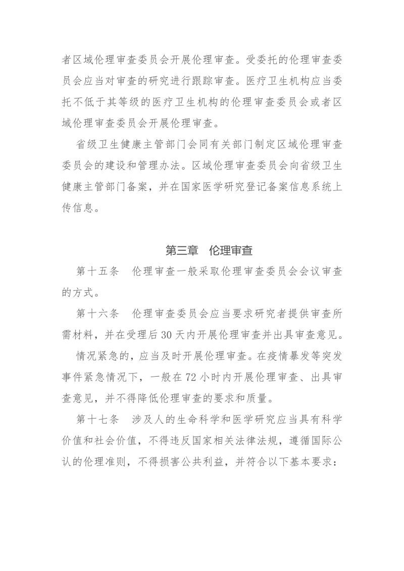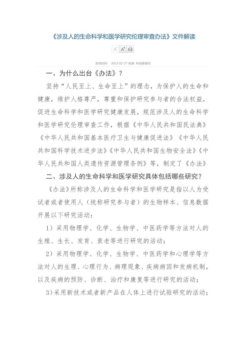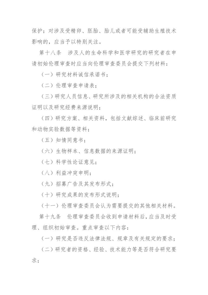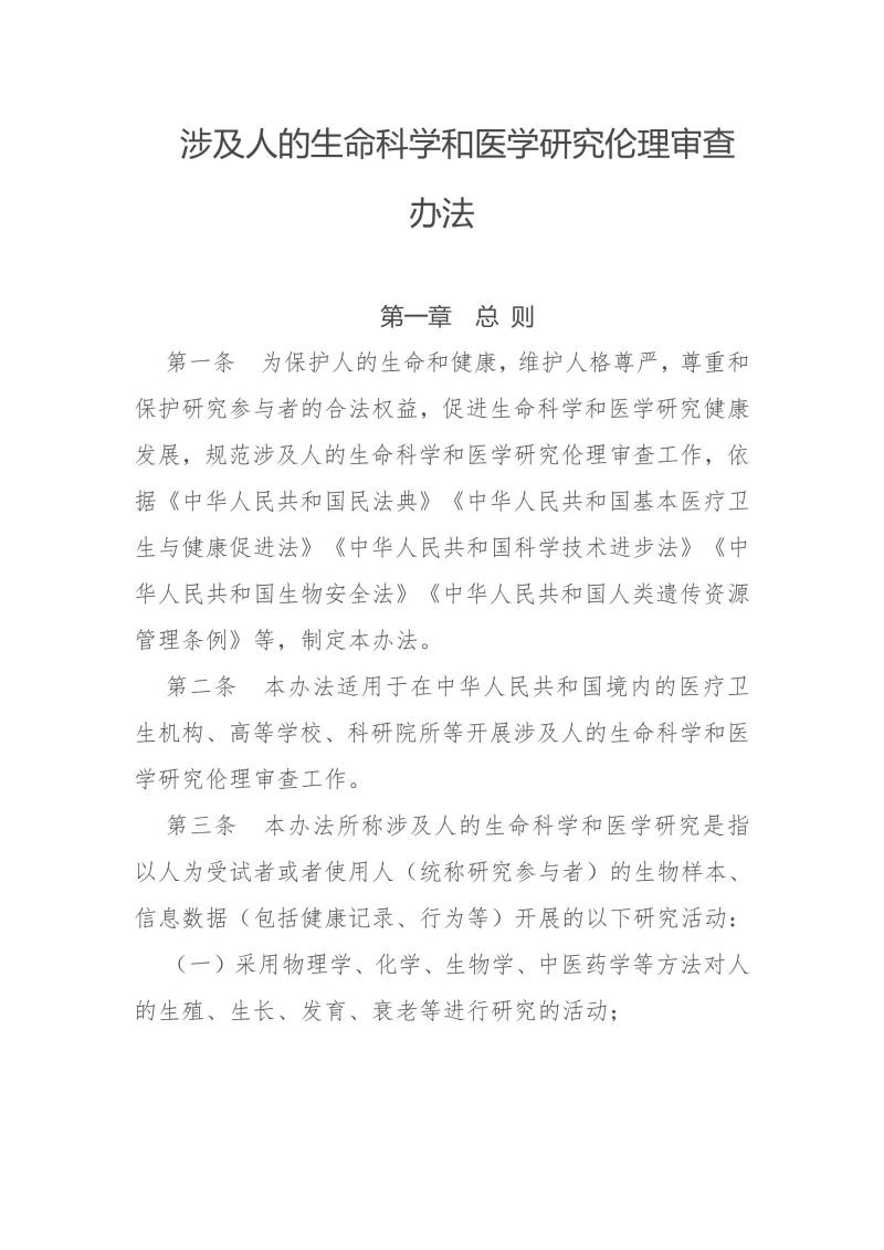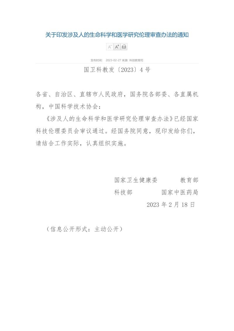 关于印发涉及人的生命科学和医学研究伦理审查办法的通知