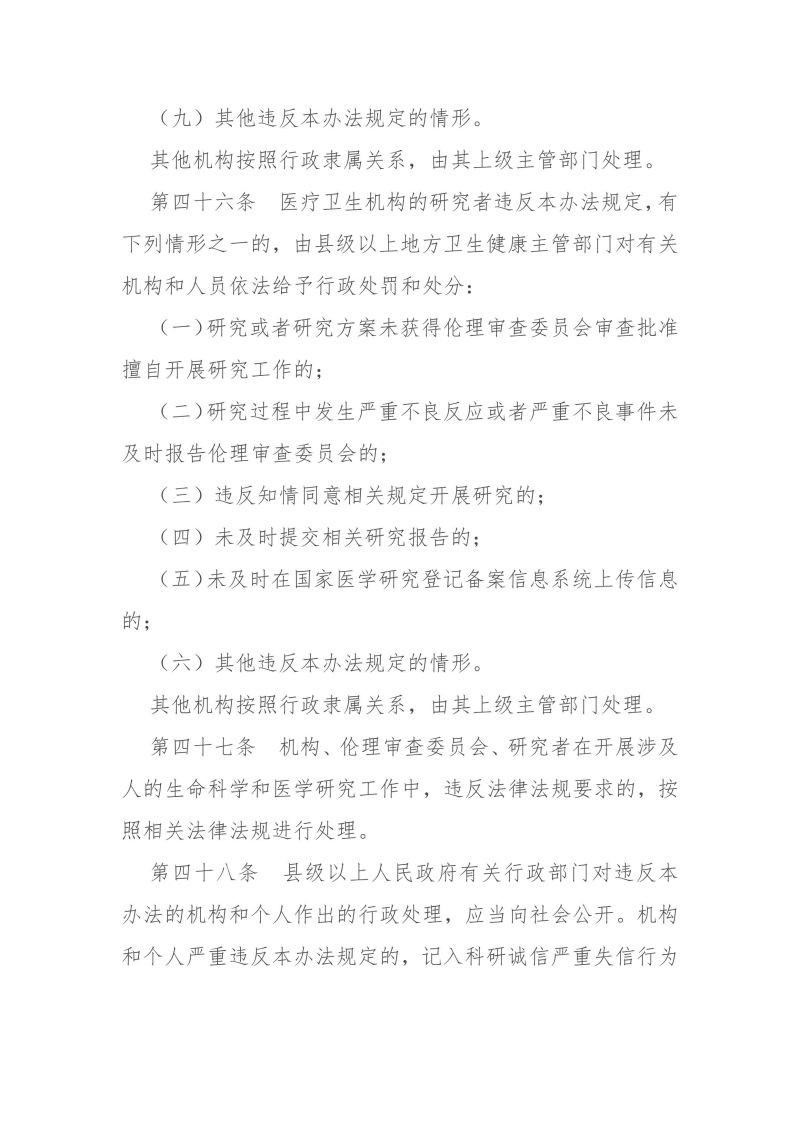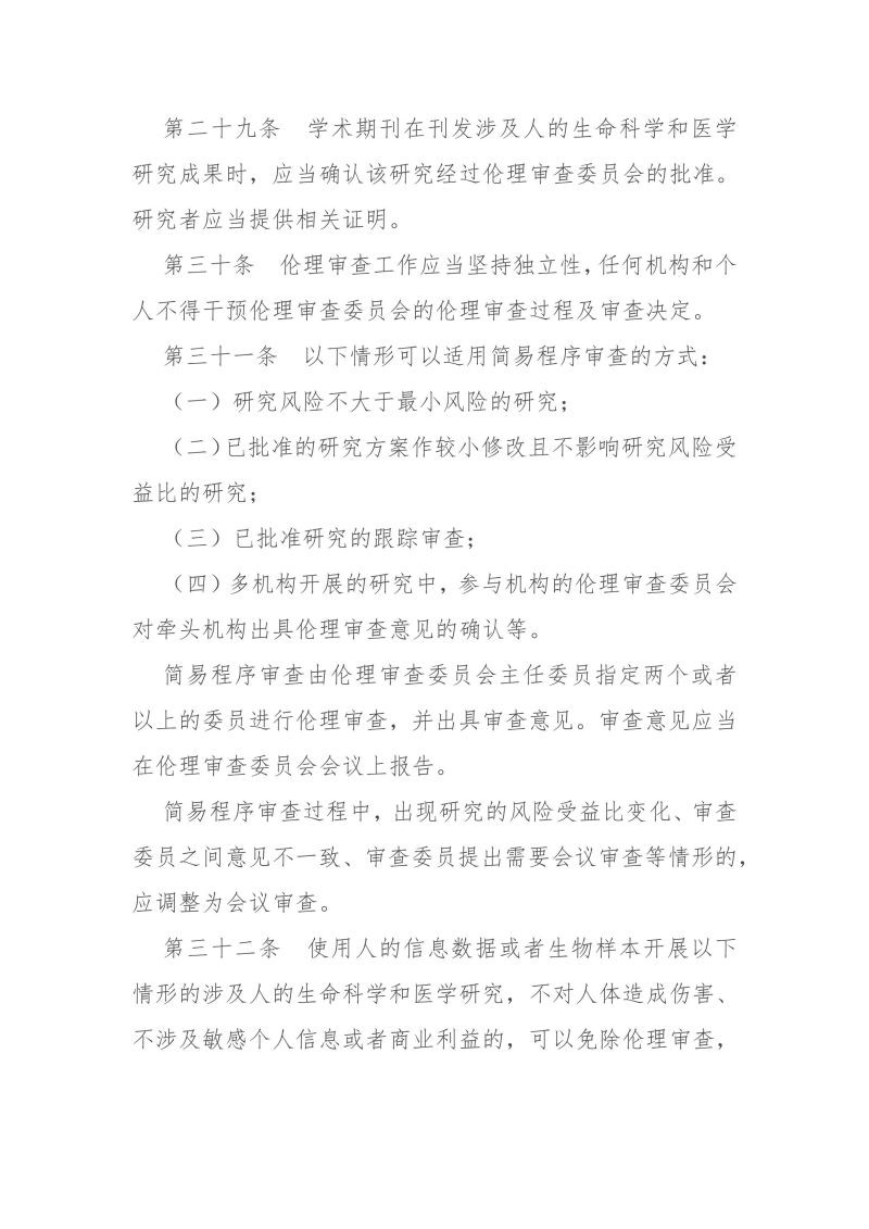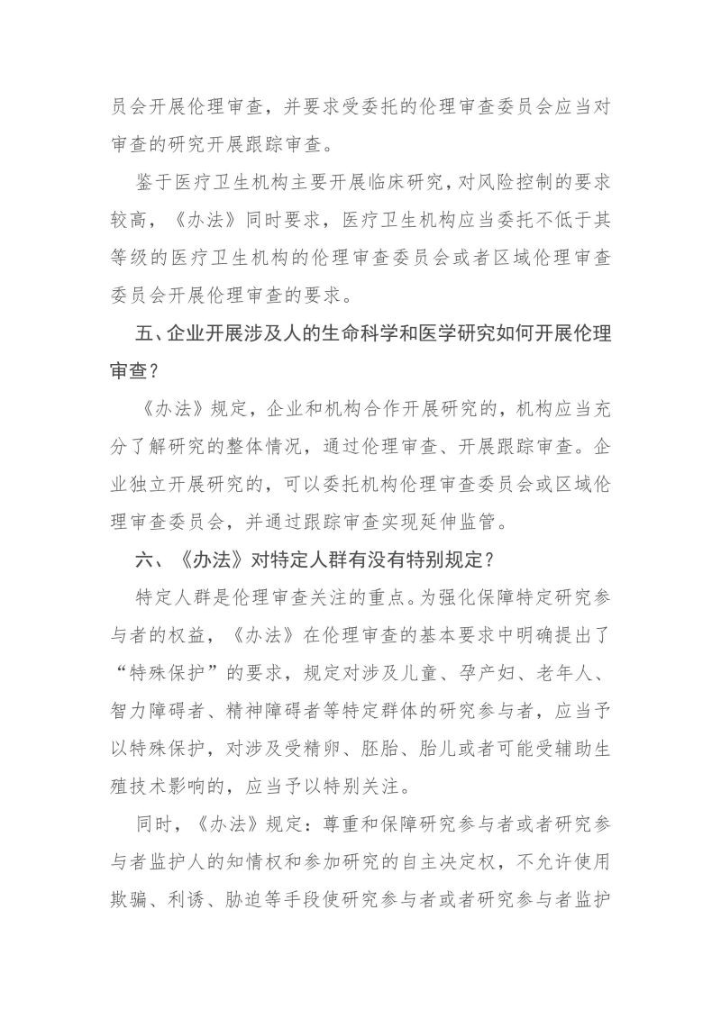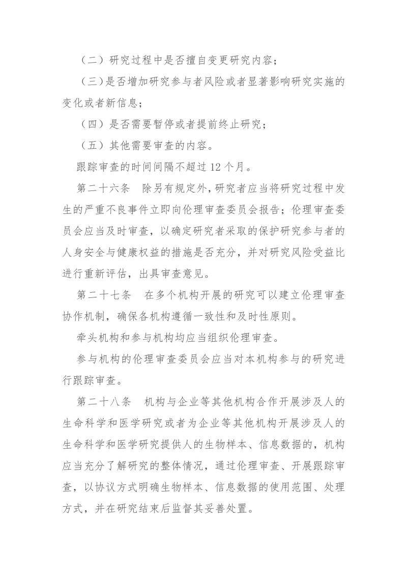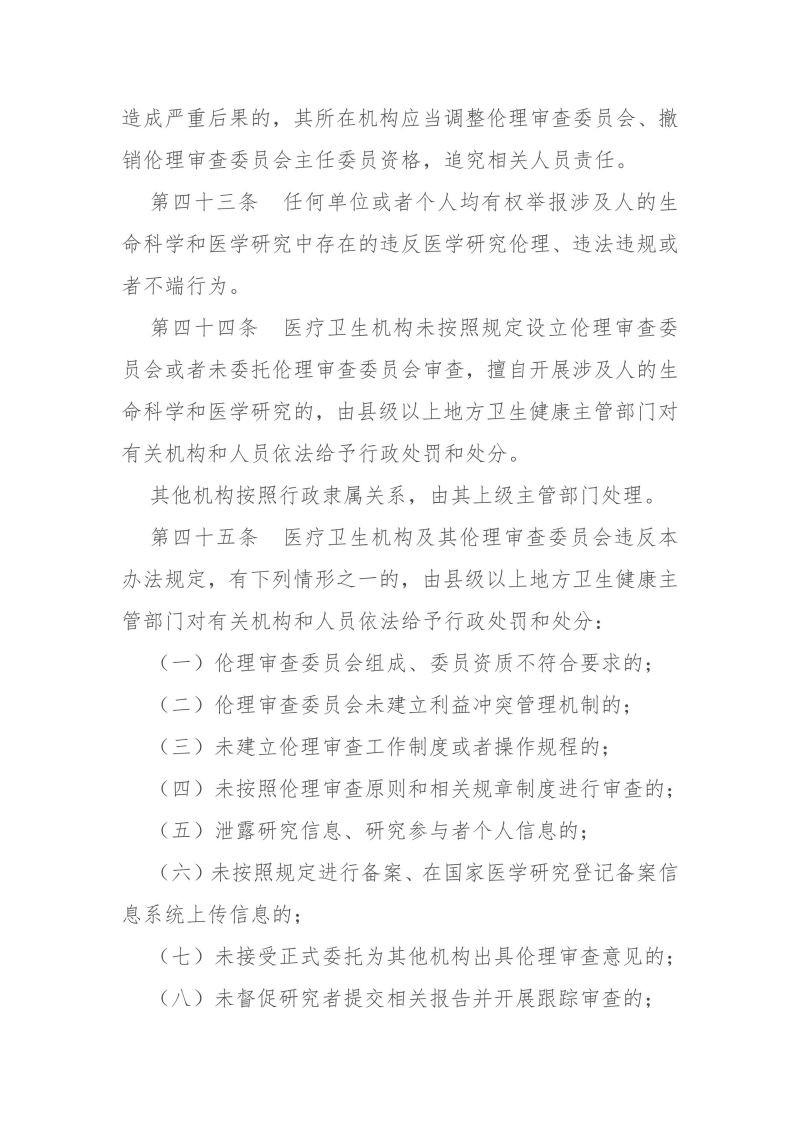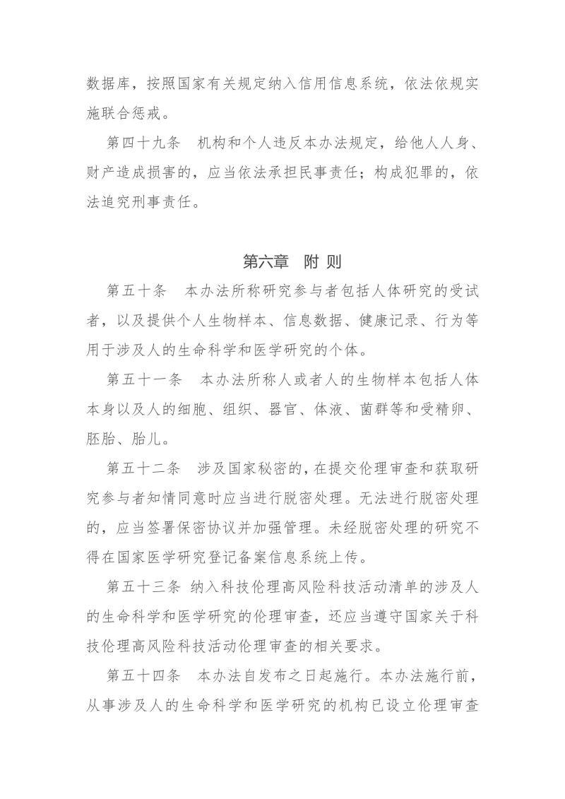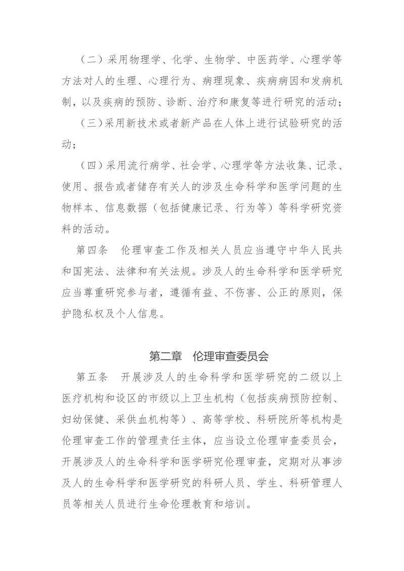 关于印发涉及人的生命科学和医学研究伦理审查办法的通知