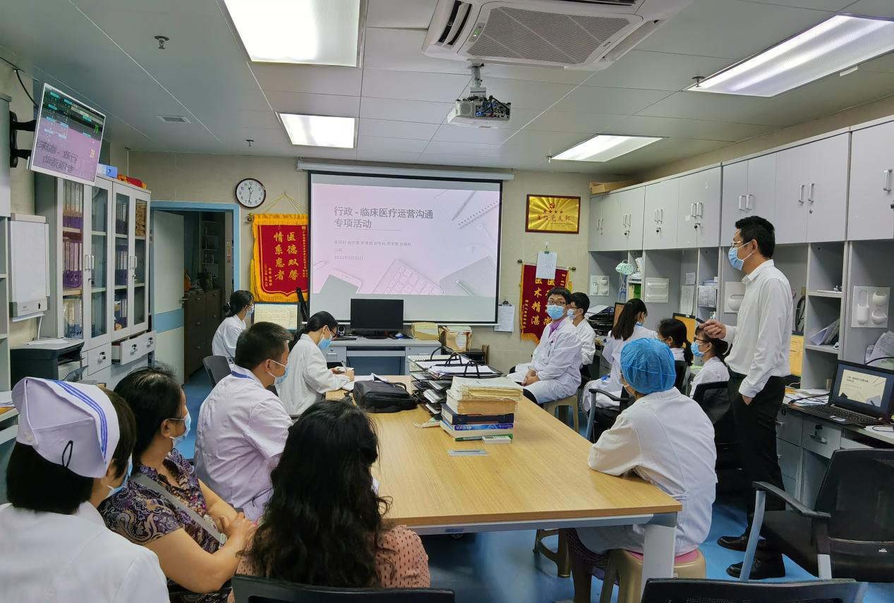 DRG付费对于医院来说是一个新事物,随着桂林市医保局DRG数据的不断反馈和DRG相关配套制度的逐步完善,医院的转型迫在眉睫。自治区南溪山医院党委高度重视国家医保政策的调整,及时调整管理模式,自5月26日开始,由分管院领导亲自带队,组织医保科、医务部、护理部、药学部、设备科、财务科等行政医技部门组成宣讲团,走进各临床科室与医师护士面对面沟通交流,帮助临床科室更好的了解医保、卫健委等上级行政管理部门的相关政策,并通过数据展示,分析科室各项数据结构,以数据为切入点,结合科室特点,协助科室做好医疗运营管理。